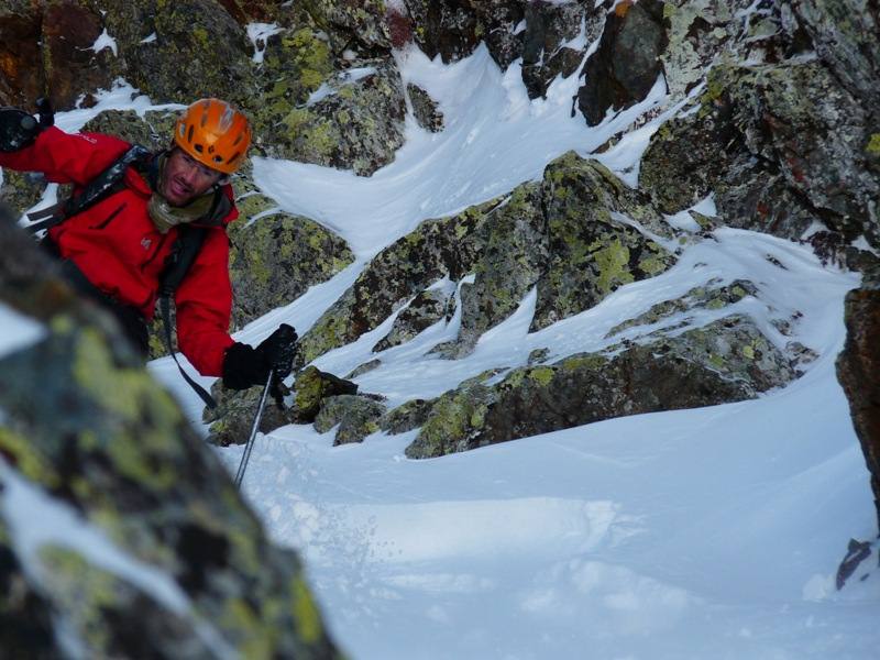 Content d'avoir fait ce couloir qui nous tentait vraiment depuis que LAL, JBT et Lio l'avait ouvert mais malgré tout cette sortie me laisse un petit goût amer. Près de la sortie lorsque l'on remarque la présence de la plaque (20 cm sur une neige homogène) on se dit que ce n'est qu'une plaque de surface, rien d'inquétant, dessous c'est bon et c'est là que les crampons mordront. Tout faux...elle a cédé lorsque Jo et moi prenons pieds dessus, bilan on commence à dévaler le couloir. Heureusement, c'est seulement les 20 cm qui sont partis et après 15 m pour moi et une trentaine pour Joël nous stoppons la glissade mais on a eu bien peur pour Xavier qui était plus bas. Il aura le temps d'ancrer les piolets et la coulée lui passera par-dessus. Un goût amer donc puisque bien qu'ayant identifié le piège nous avons sous estimé le risque potentiel...et on s'en veut.