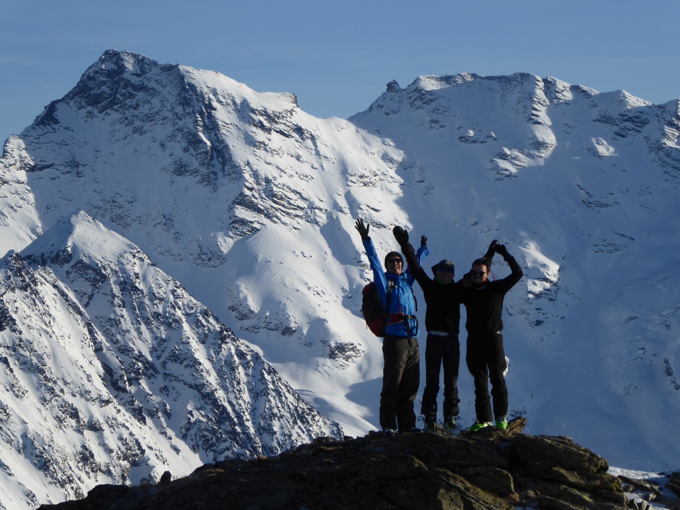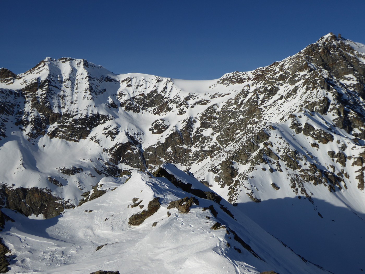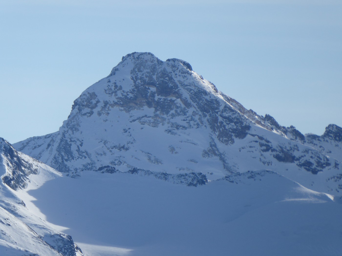 Compte tenu de notre heure tardive de départ, nous étions seuls au sommet. Quelques rotations d'hélico sur la rive droite du Valgrisenche à peine génantes pour nous qui étions sur l'autre rive.