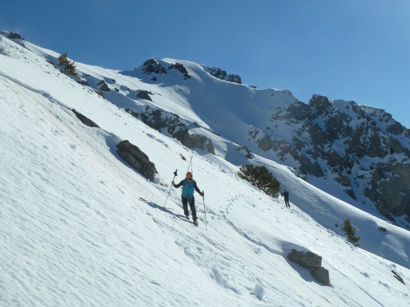 Montée par le ravin de la Traverse comme H1 puis traversée nord de l'épaule vers 2250 pour rejoindre les couloirs supérieurs sous la dernière pente du sommet 2609 (4.2/E2)