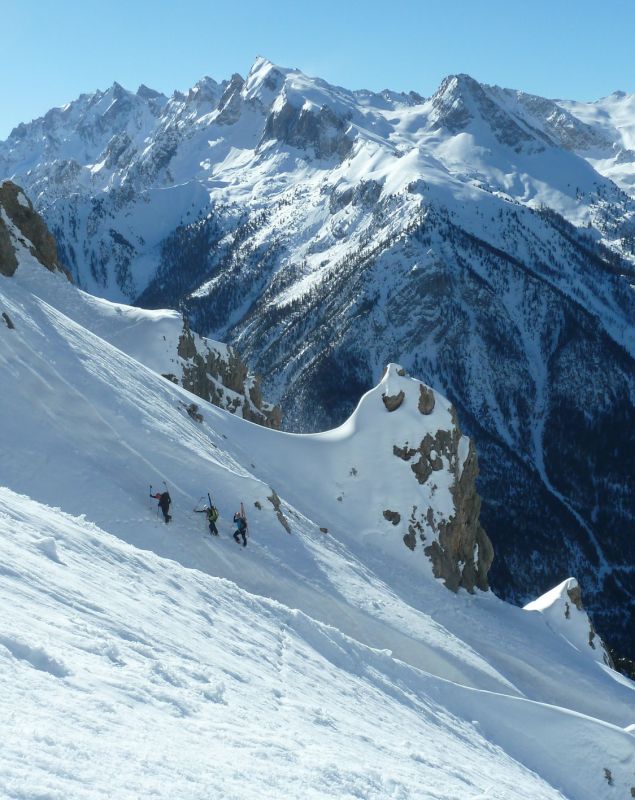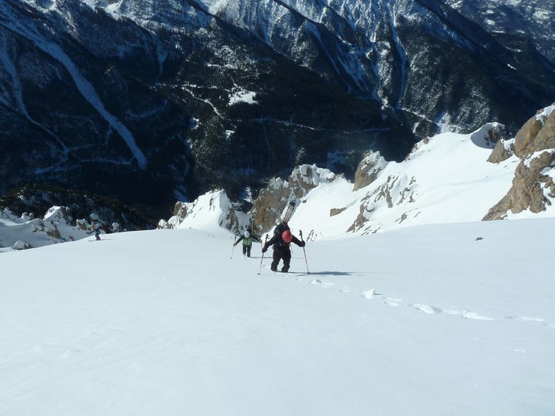 Grace à Jacques Roux nous rentrons cette course réalisée le 8 mars 2014, avec presque un an de retard. Elle est un hommage à Alain Vincent discret et précieux collaborateur de Volopress. Elle est l'illustration parfaite de ses talents de skieur alpiniste. Explorateur, skieur et alpiniste de haut niveau à l'énergie et la condition physique remarquable, il fut tout autant un initiateur de montagne au sens le plus noble, entrainant dans de belles aventures un nombre impressionnant de jeunes et moins jeunes du CAF ou de l'ASPTT, de copains et d'amis. Pour en savoir plus voir rubrique infos.
