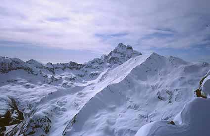 col Vieux => brèche de Ruine => Asti par l'arête ouest => descente face nord jusqu'à 2230m dans la gorge de Ruine => brèche de Ruine => bagnole. A ne pas confondre avec le pic d'Asti (*), plus bas et plus à l'ouest. (**) sommet noté 3287 sur IGN mais ce n'est pas le point culminant. Juste à l'ouest, on devine la courbe de niveau 3300. La face nord serait à presque 40° de moyenne sur 400m. Difficulté : à débattre 3.3-4.1/E2/PD-, D+ 1500m