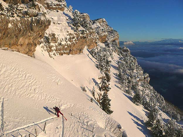Cette chute de neige qui a surpris plus d'un prévisionniste par son intensité a dû être accompagnée de vents tempêtueux même en moyenne montagne. La neige est très densifié et on peut globalement dire que c'est plaqué partout, le plus sûr, hormis les pentes faibles, étant comme toujours les couloirs ultra-encaissés. Attention, on se retrouve parfois assez vite sur la sous-couche durcie par les pluies de la semaine dernière