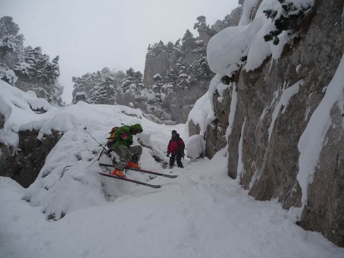 Virgule puis on rejoint le GR vers 1500, deuxième montée pour profiter à nouveau du cirque et pour une descente par le Pas de Ragris. Celui-ci manque un peu de remplissage en haut mais passe sans déchausser : le ressaut par le câble à gauche, juste en dessous une étroiture d'habitude nivelée par un peu de dry et un petit saut. Le bas plus large était très bon.