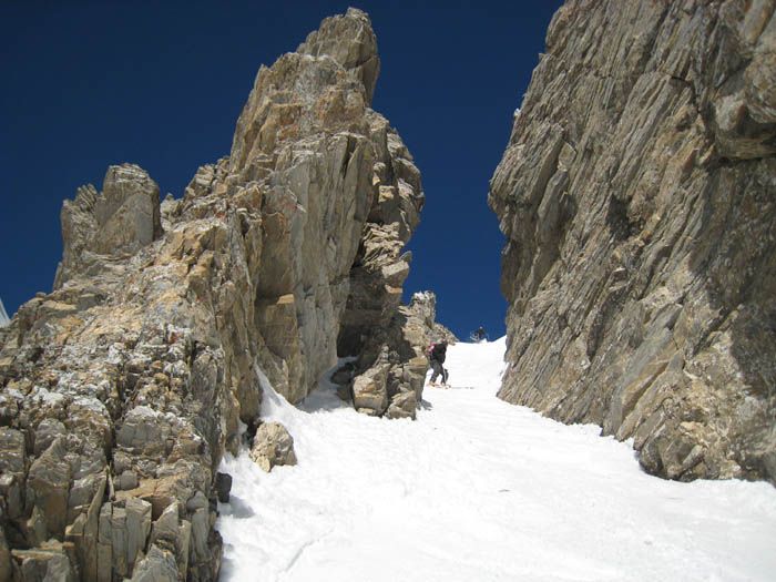 RAS jusqu'à 2700 et là, surprise, le couloir habituellement pédestre est archi rempli, en belle transfo... Donc ski du sommet avec une couenne de 50m > 45° sur une largeur minimale de 2m50