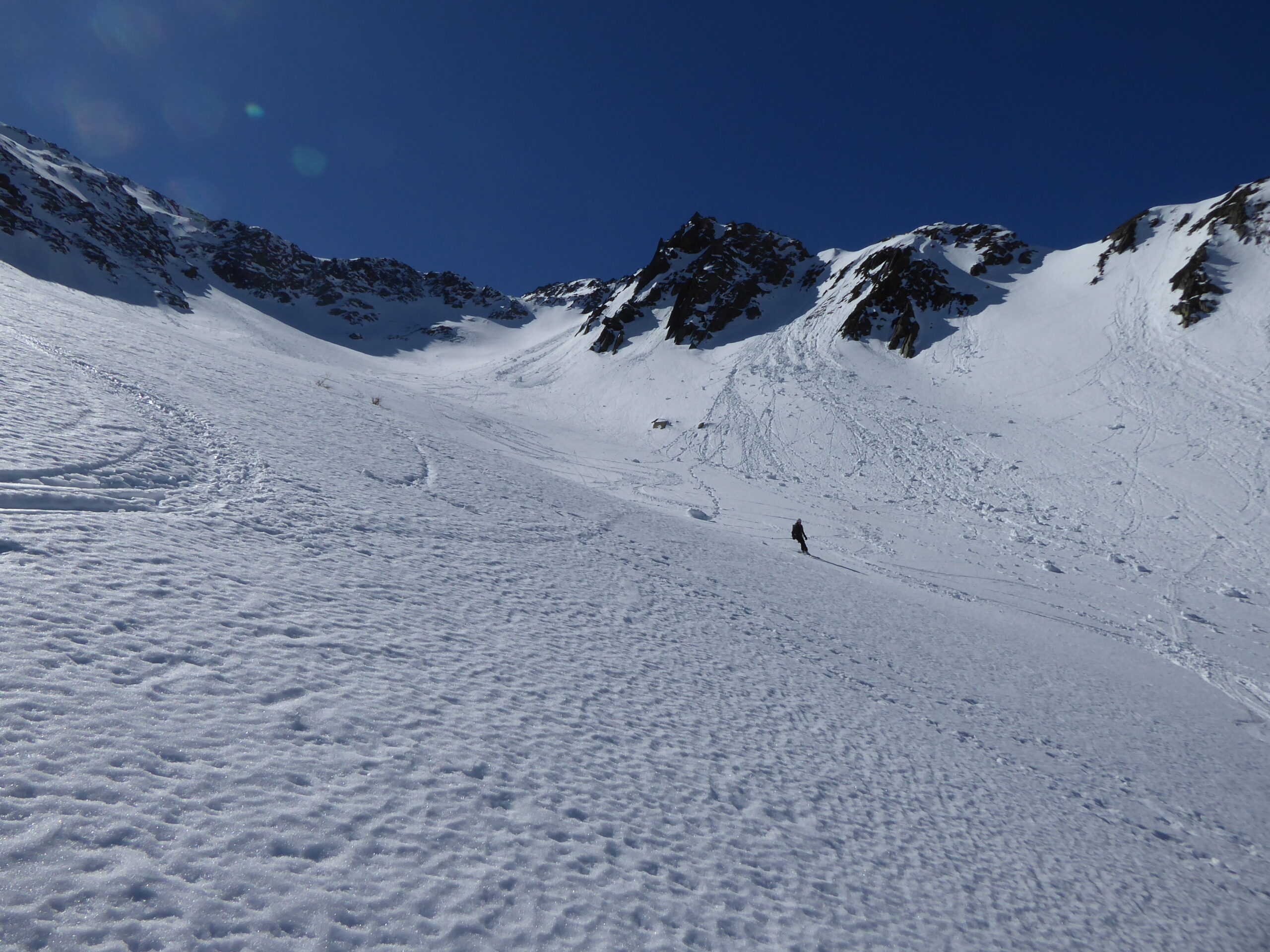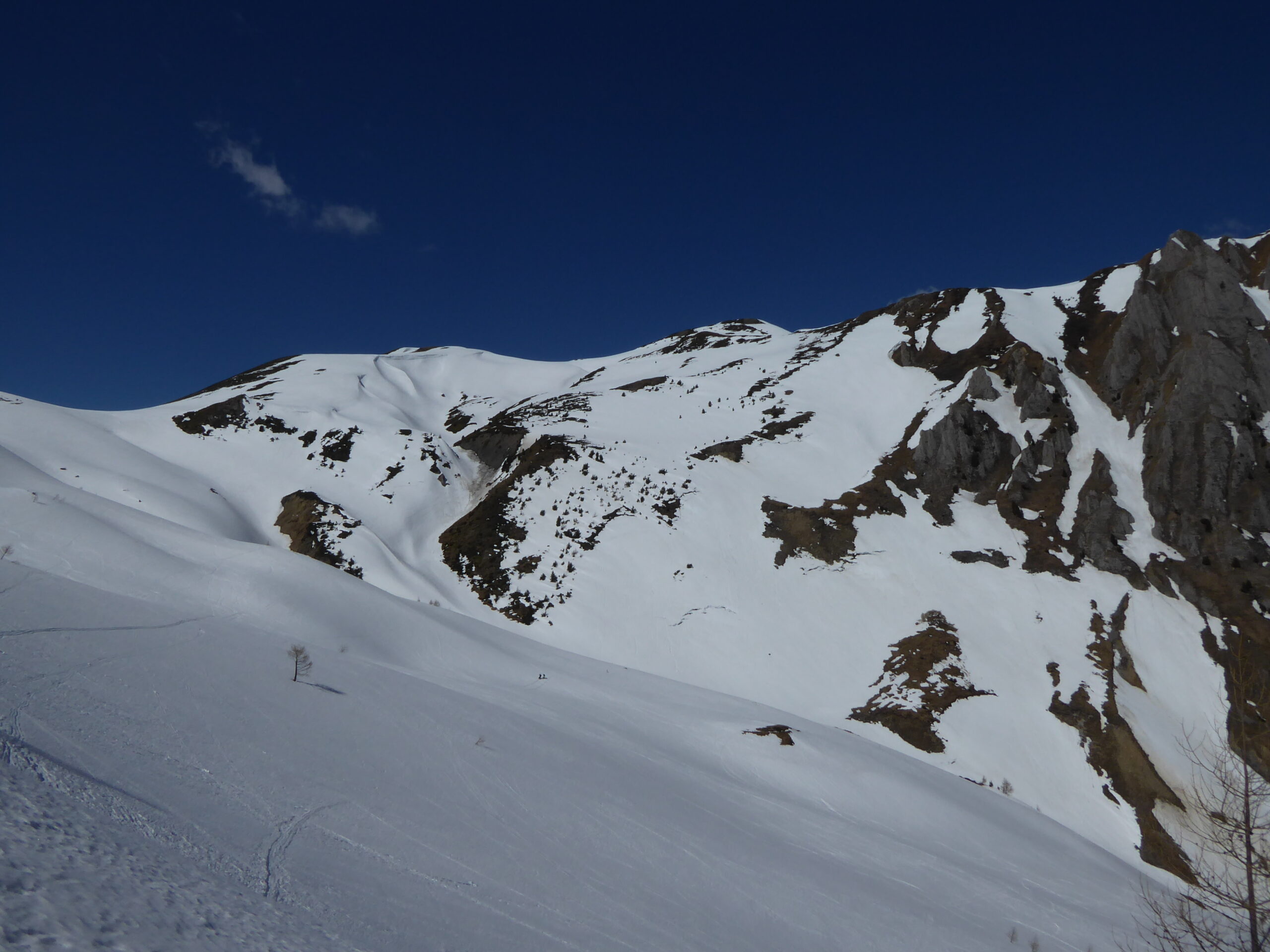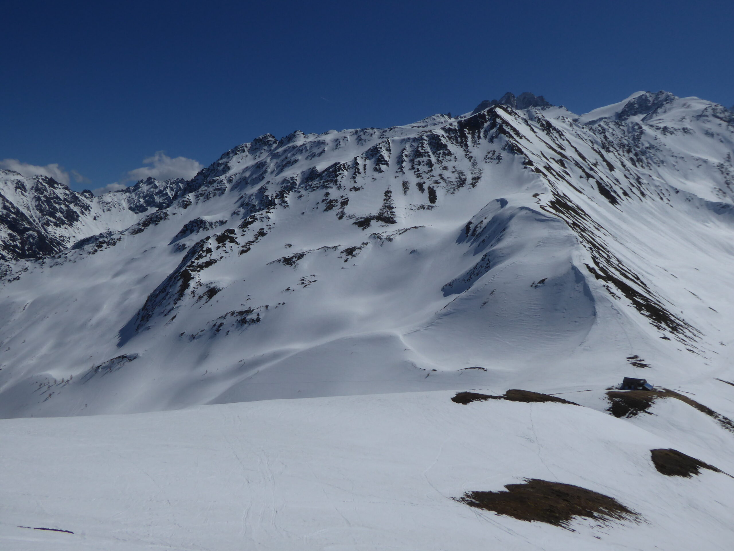 Encore un peu de poudreuse en cours d'humidification dans les pentes nord. Neige transformée en sud, croutée dans les autres orientations.