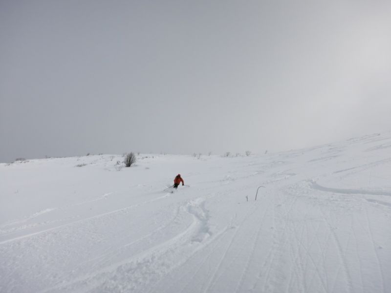 on skie tranquille dans de belles prairies sous le sommet avec des pentes douces ( on ne voulait pas prendre une avalanche dans les conditions du moment) et un peu de bois sur le bas, sortie agréable donc...A vos spatules et bon skis!