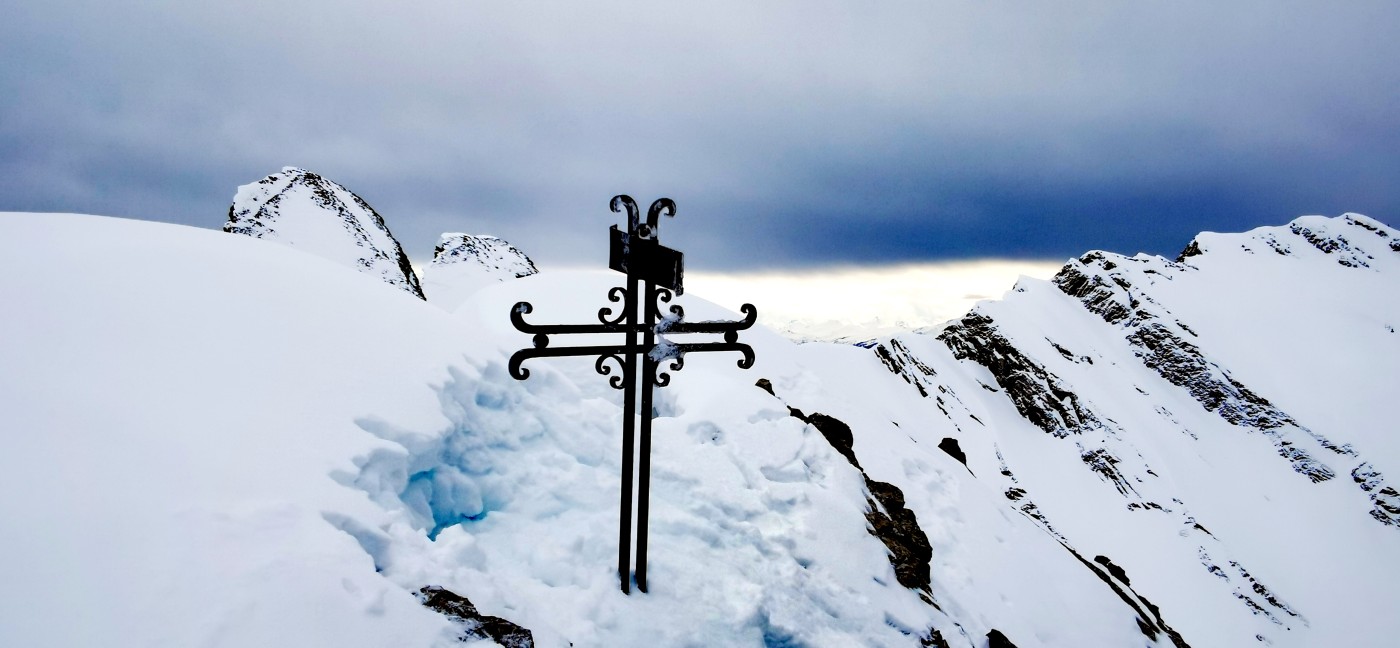 J'ai enfin trouvé la croix située à l'antécime du Trou de la Mouche, elle était couchée et en partie sous la neige. Je l'ai remise en place.