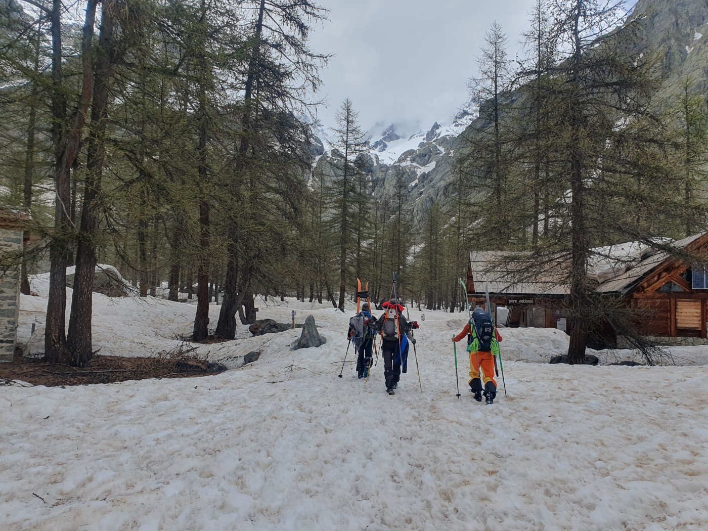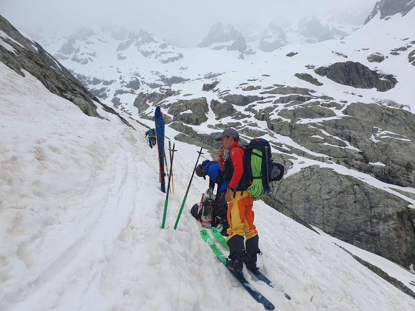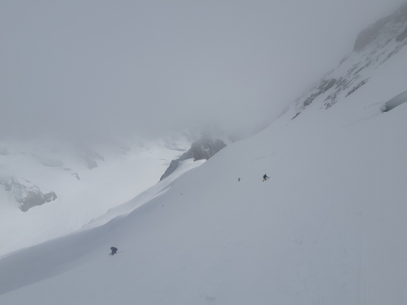 Beaucoup de rochers affleurants ou cachés par cette couche, se découvrirent par le passage des premiers skieurs descendus 30m à droite du couloir pour ne pas gêner l’ascension des autres. On a préféré redescendre à pied le couloir.