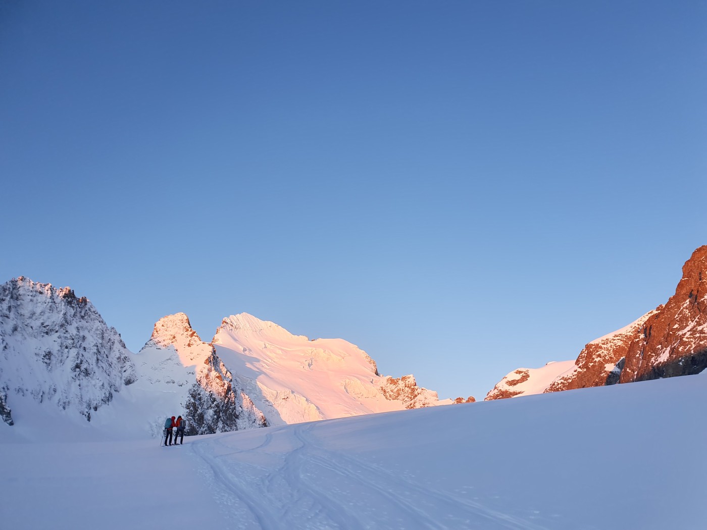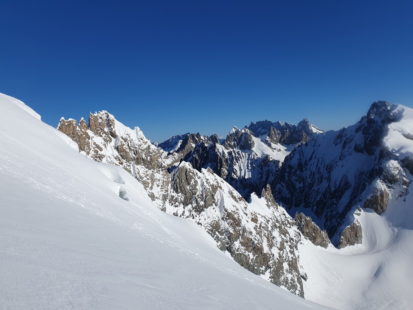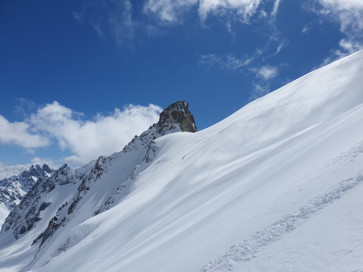La face sous la barre des Ecrins est poudreuse et pas purgée.