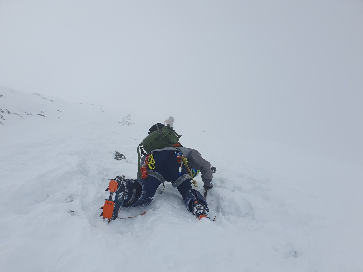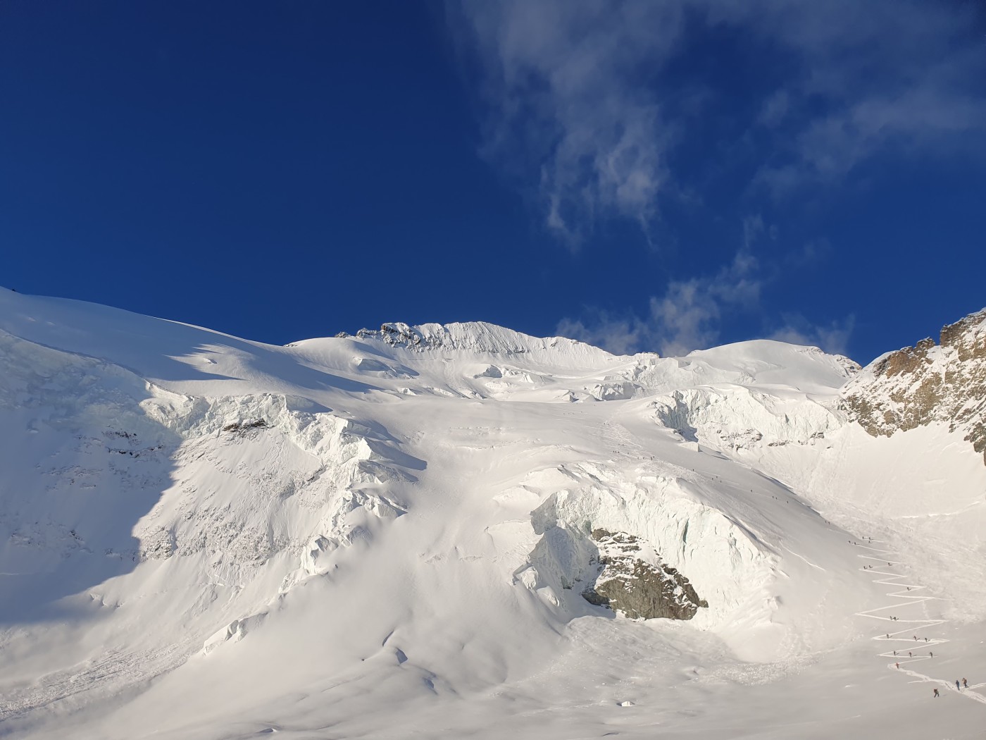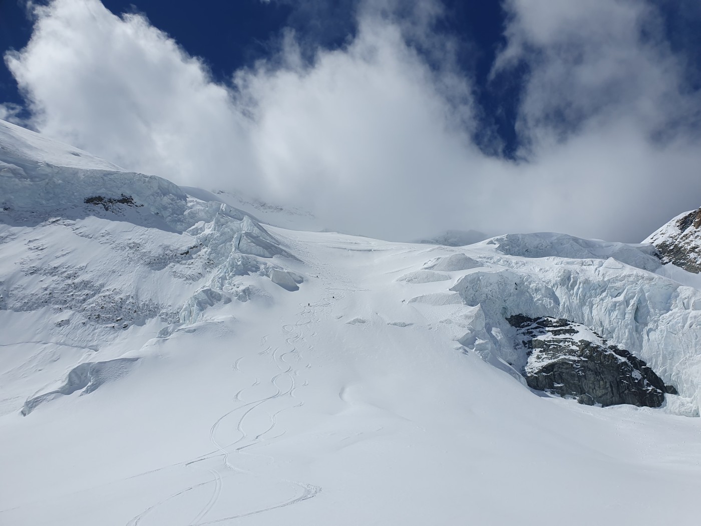 J2 : Montée par la pente de droite plutôt que la langue centrale du glacier qui était crevassée (itinéraire choisie pour la descente).