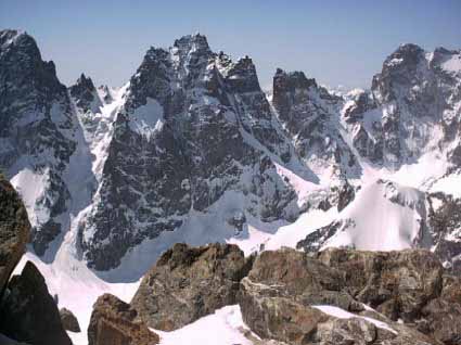 Superbe sortie de fin de saison en excellentes conditions. Neige tendue sur les 50m du bombe de sortie, recouvrant à peine la glace, 20cm environ, mais heureusement Áa accroche bien. Ensuite, la petite croute de regel vole en eclats sans efforts et il ne reste plus qu'à enquiller les virages. Barre des Ecrins pas en conditions : glace dans la partie mediane du Coolidge et rochers affleurants en haut. En revanche, la directe N du Dome semble en conditions. A noter que vu de la route, la NE des Agneaux est aussi completement blanche