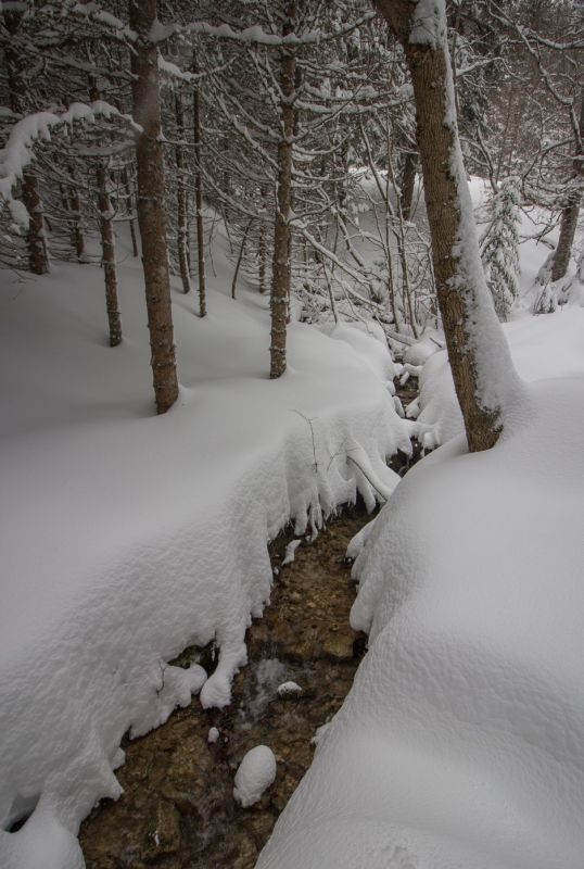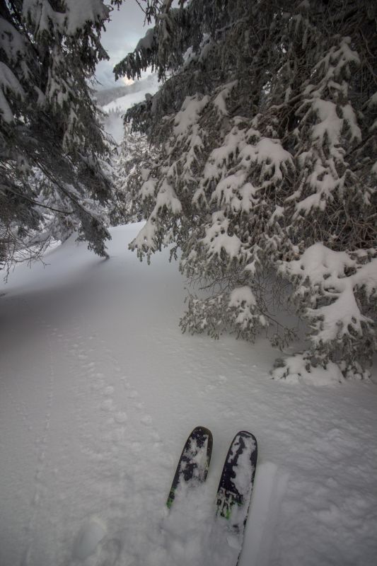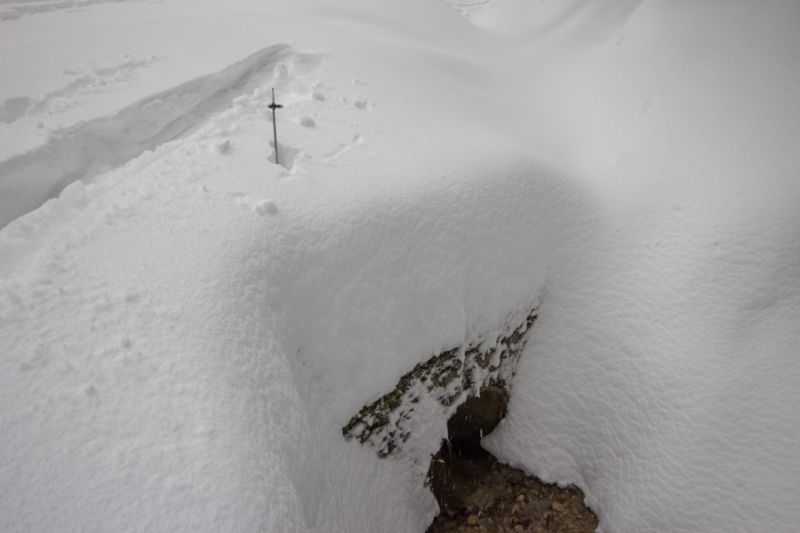 40 à 50 de fraîche surmontant une croûte de regel. Pas d'observation de ruptures. Le vent commence à travailler la neige peu à peu sur l'arête SW de Pravouta.