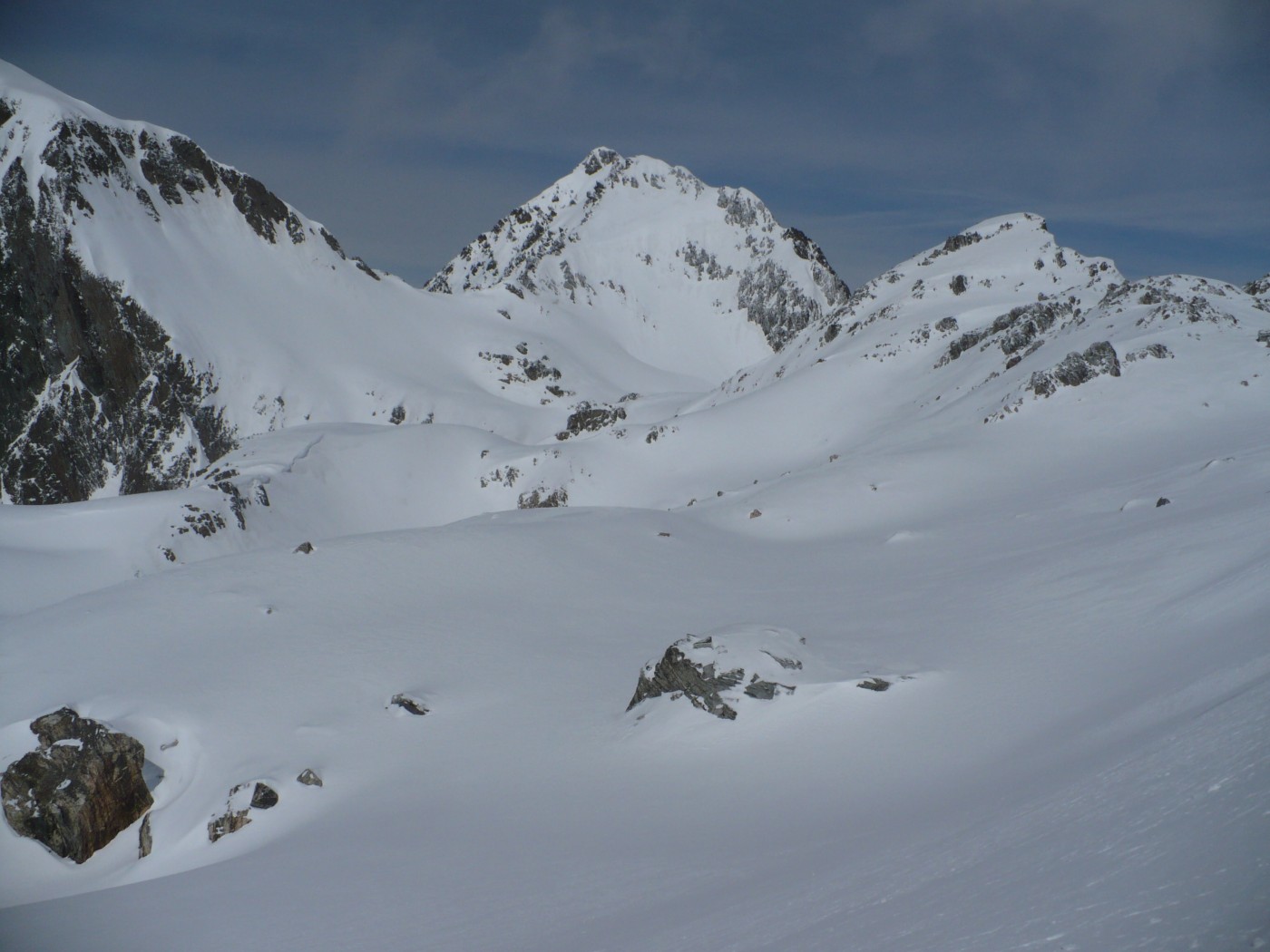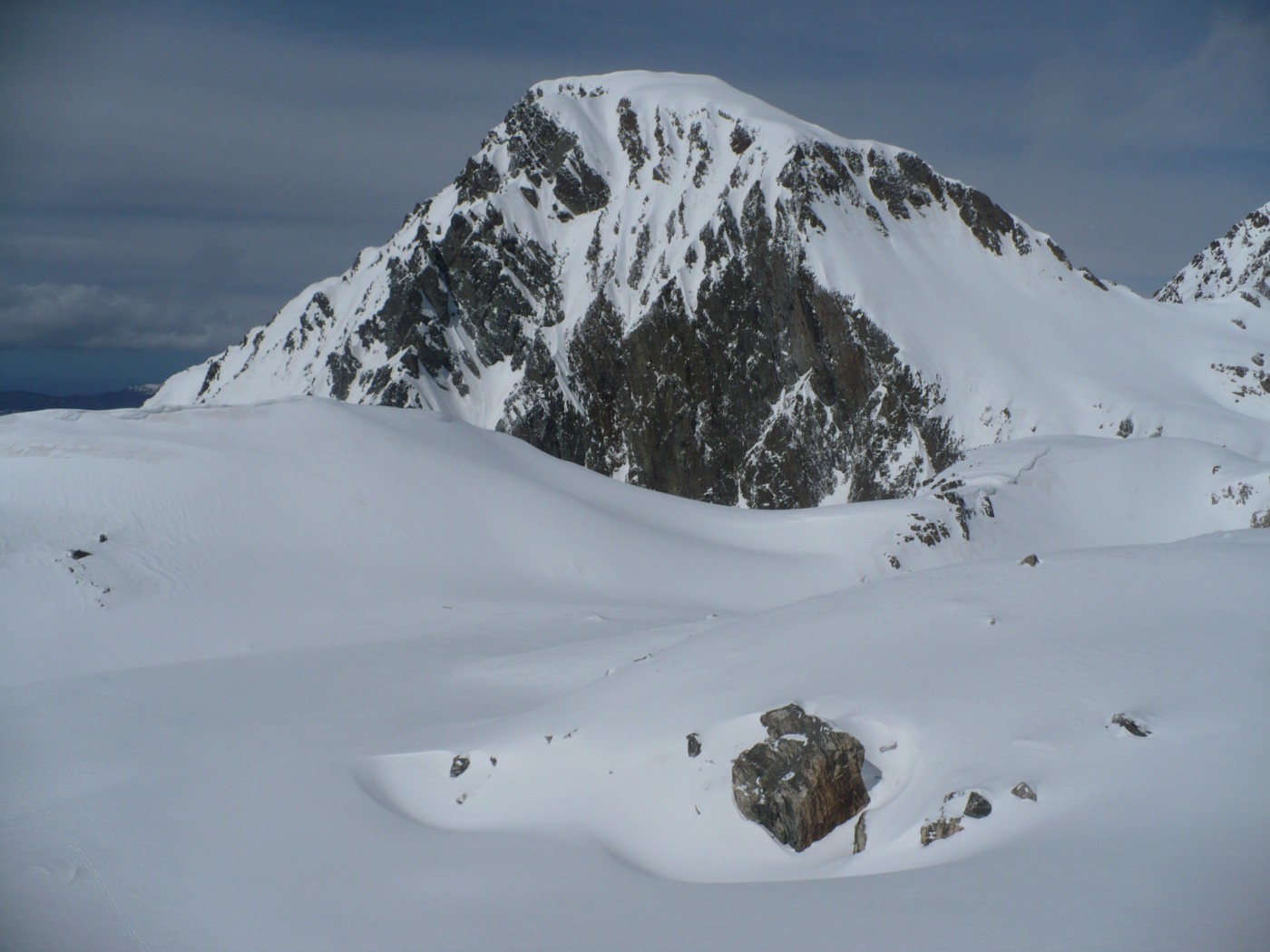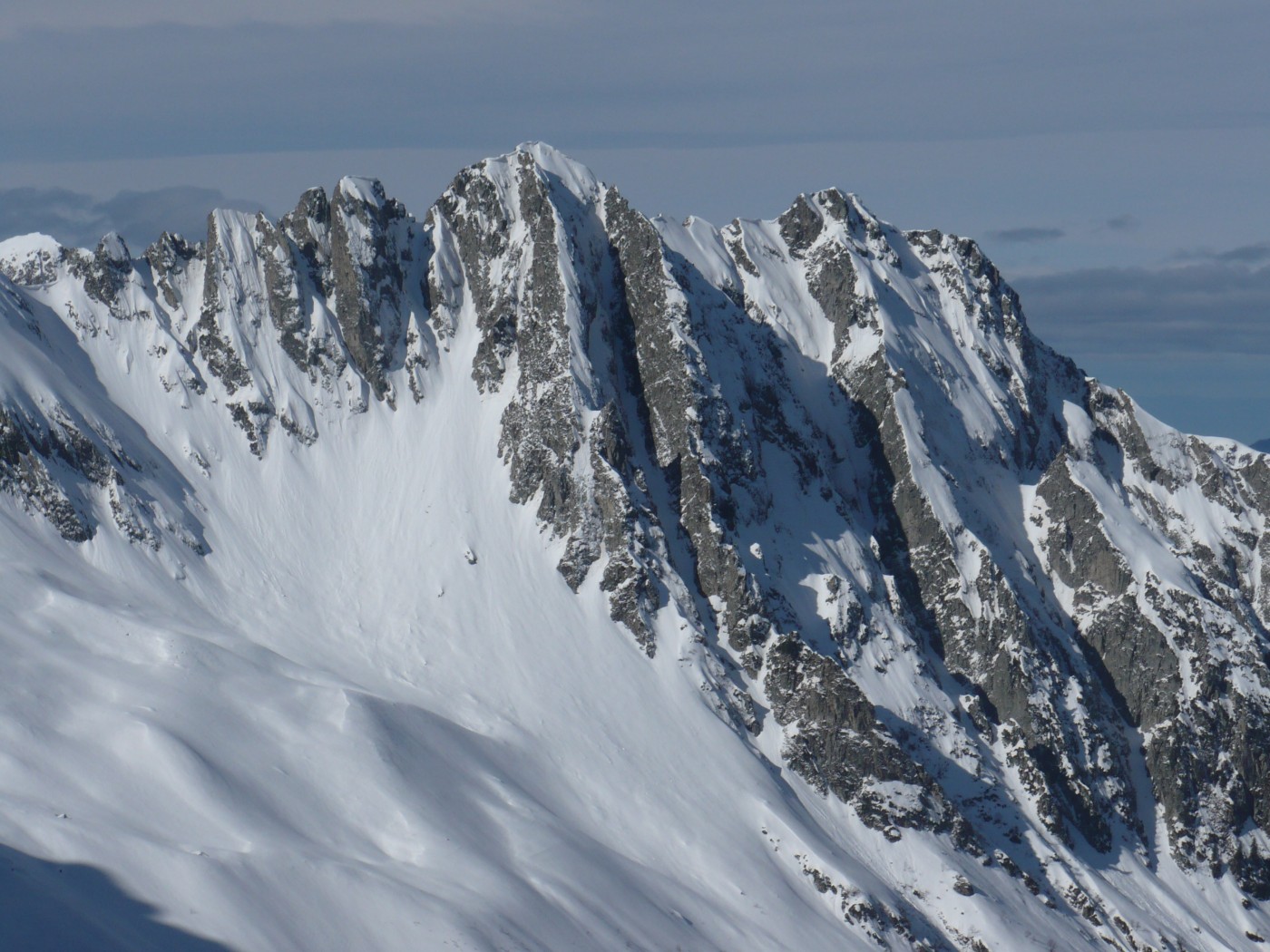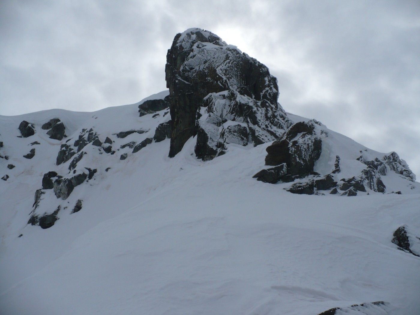 Quand on aime, on ne compte pas !!! Retour dans le secteur pour un autre itinéraire. 4 personnes au départ pour le Rocher Blanc, puis seul sur l’itinéraire du Bec d’Arguille. A la Marmottane, je rejoins la combe sud vierge de traces ; de visu, le couloir sud/ouest me parait peu fourni en neige récente, et la sortie est inskiable, alors je continue jusqu’au replat du passage Brabant où je laisse les skis pour remonter à pieds l’arête ouest, facile et esthétique, jusqu’au col à 2800 m ; accueilli par des rafales de vent violentes annonçant le mauvais temps, je continue jusqu’au gros rocher barrant l’accès au sommet ; la corniche et le couloir terminal en cailloux me dissuadent de faire les derniers mètres jusqu’au sommet. Descente de l’arête avec quelques éclaircies, puis ski de cette belle combe en super neige, à peine réchauffée. Retour par la Combe Madame avec une neige encore froide.