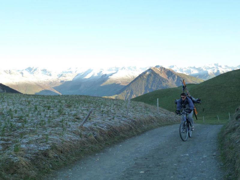 Un air de début d'hiver au petit matin, avec la fraicheur et le saupoudrage de la veille jusqu'à 2000m. Pas désagréable, mais cache-misère de l'enneigement global qui, en plus du déficit de précipitations depuis janvier, vient de subir le deuxième mois d'avril le plus chaud jamais enregistré (derrière 2007), et le plus sec jamais enregistré (soit depuis une centaine d'année).