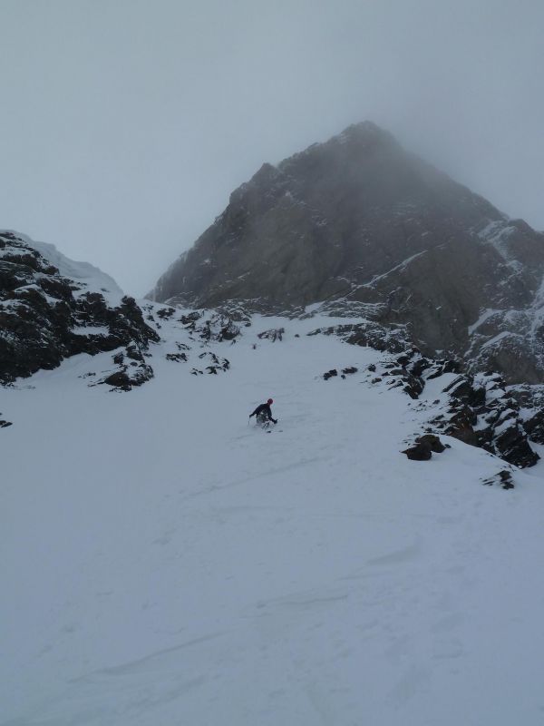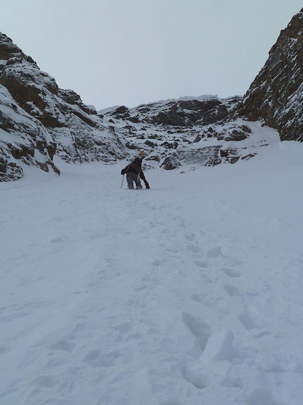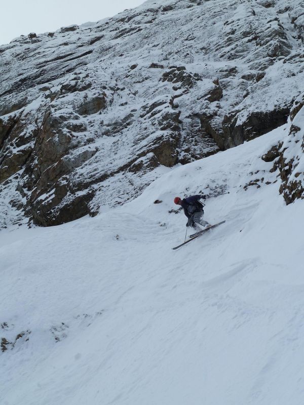 Déclenché une petite plaque (rupture 20cm) à 2850m dans un talweg sous le vent d'est.