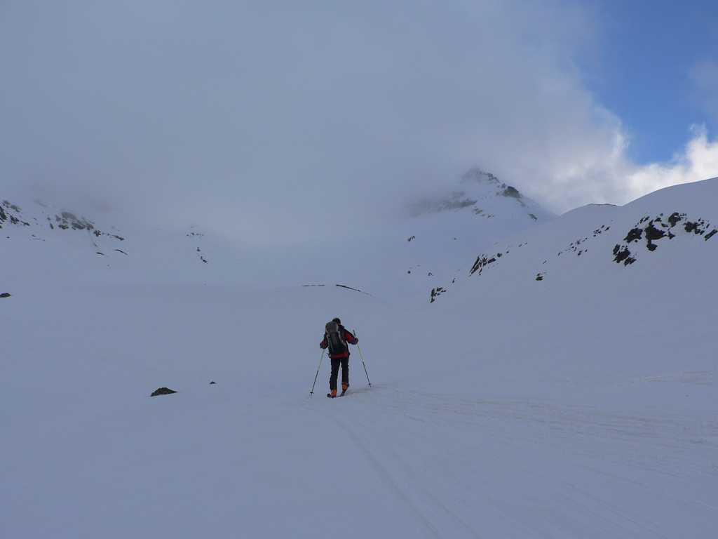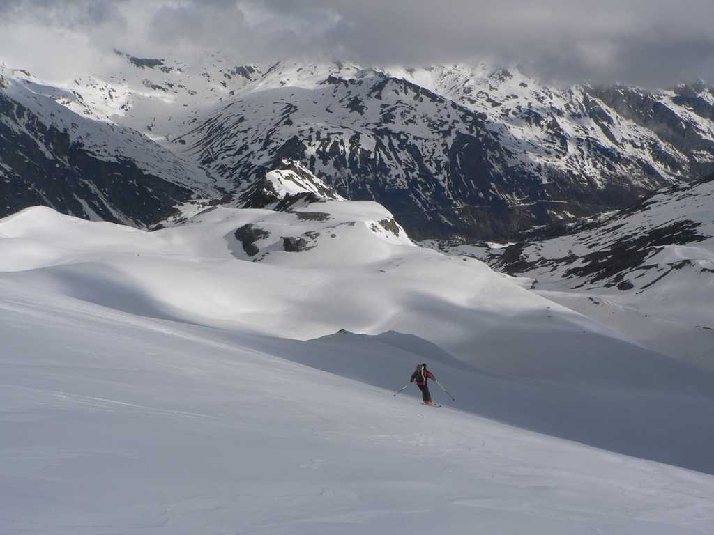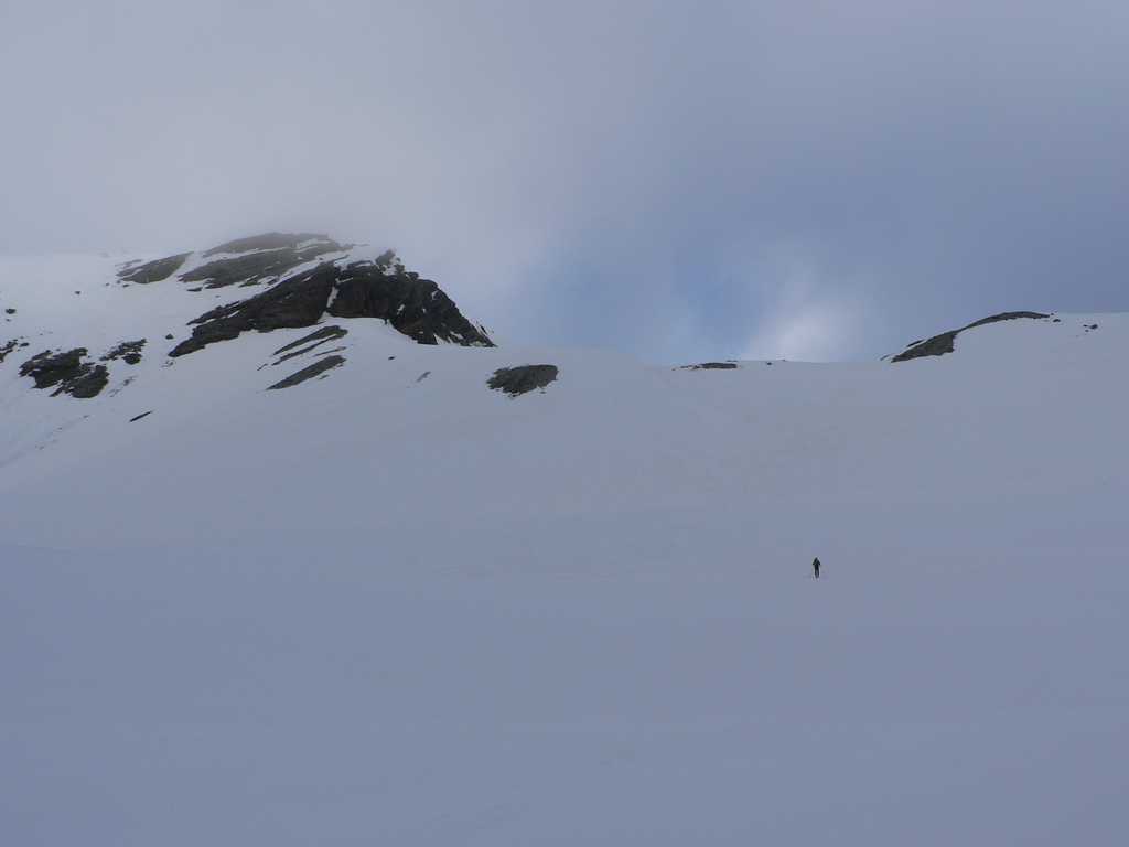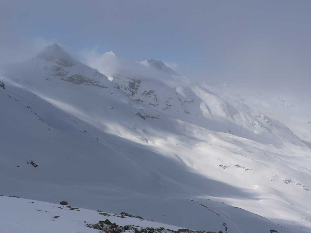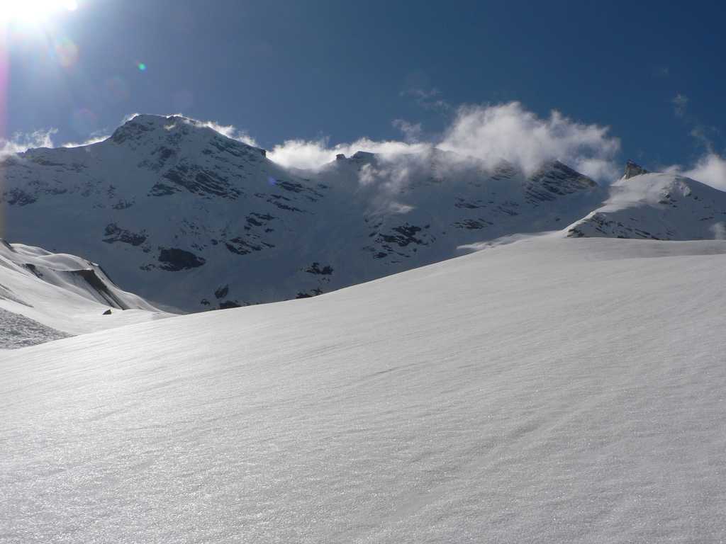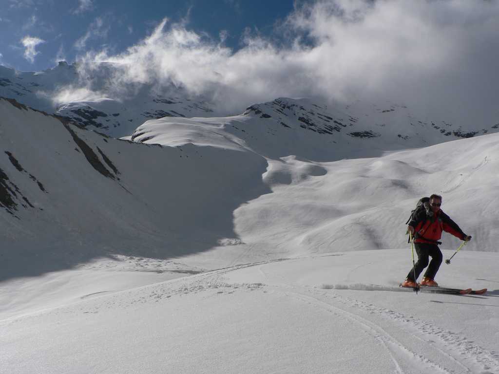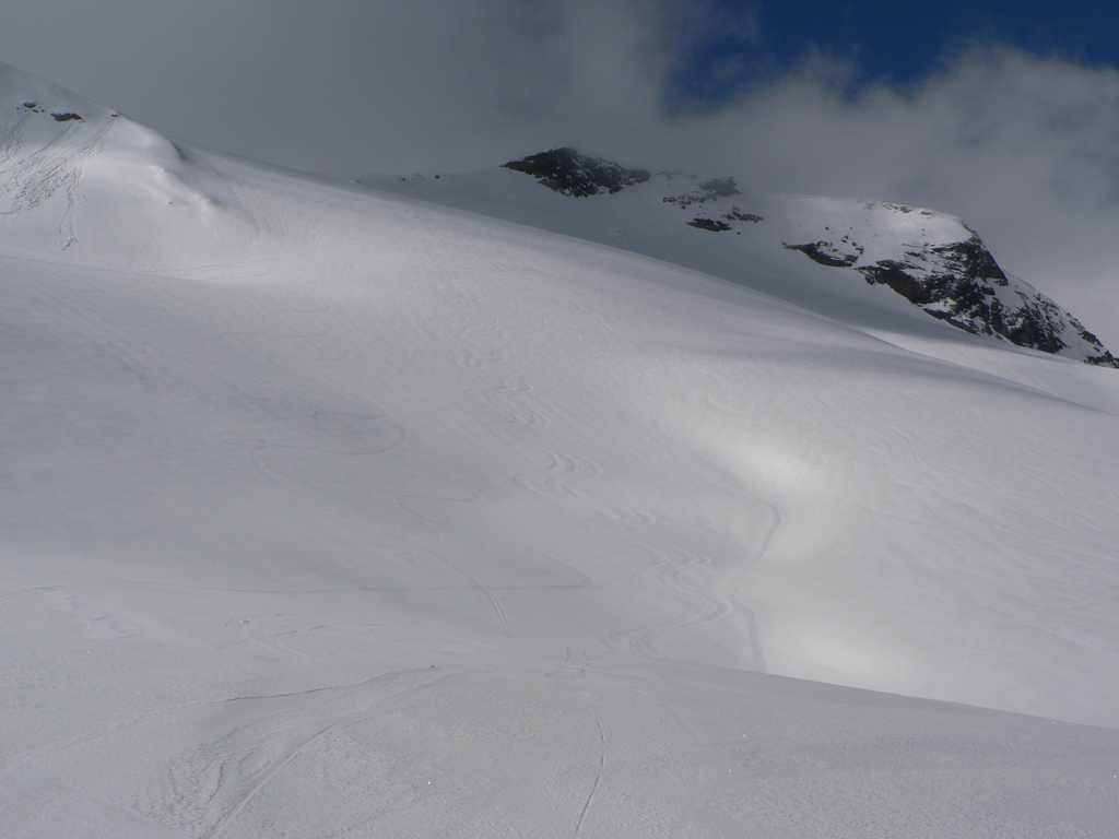 Nous sommes descendus sous l'alpe du mont Forciaz par le talweg qui plonge sur Arolla. La piste est ensuite déneigée. Nous avons rechaussé 0,5 km plus loin pour descende sur Usellières. La route rive gauche du barrage n'est toujours pas ouverte mais il est probable qu'elle le soit le week-end prochain. Le gardien de Bezzi prévoit de monter aussi et aura l'information.