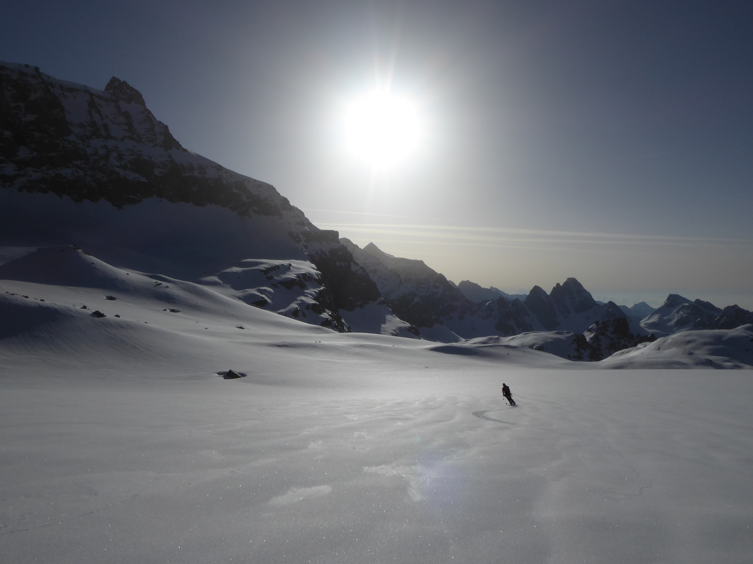 J2, col du grand Paradis, descente du glacier Noaschetta jusque 3100m environ. Montée au col Noaschetta puis au sommet par son arête nord. Descente versant E du col Noaschetta jusqu'au lac du Gay. Remontée au col du grand Paradis. Descente versant ouest puis traversée vers le SO pour rejoindre le vallon de Seyva et le point de départ.