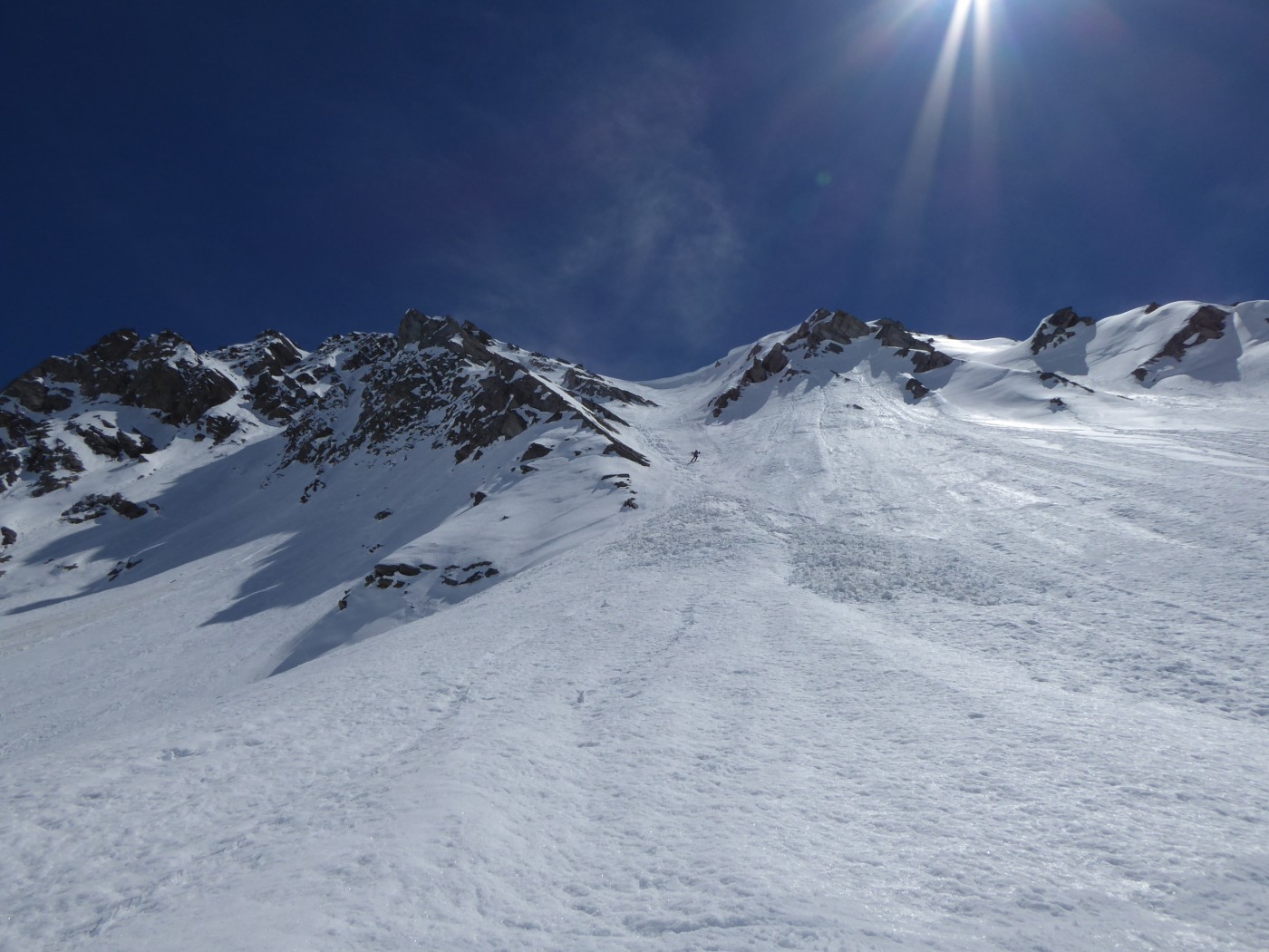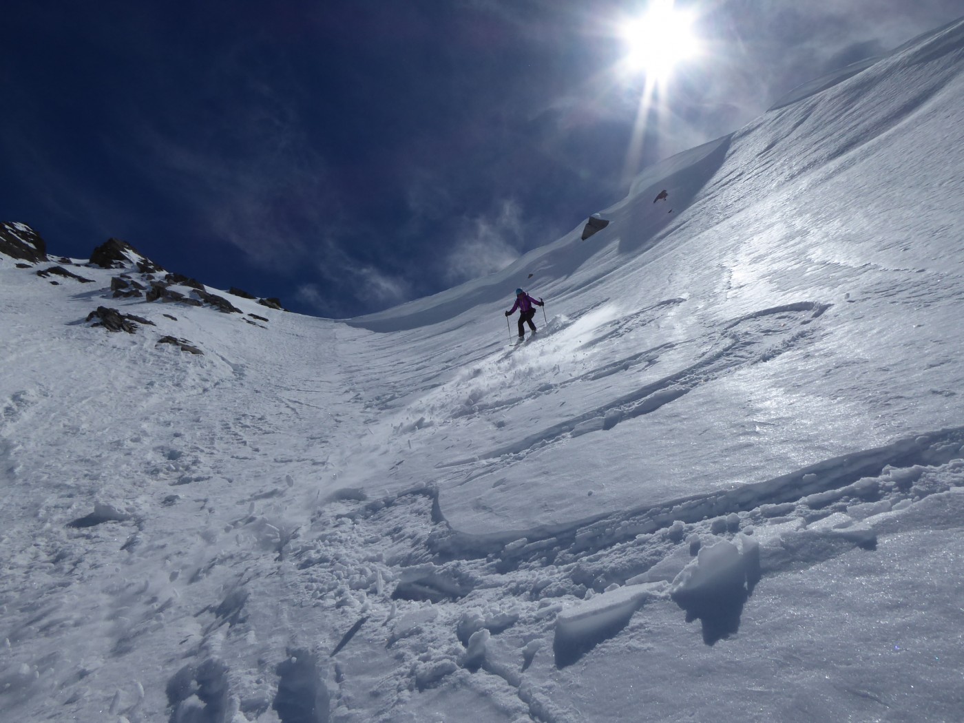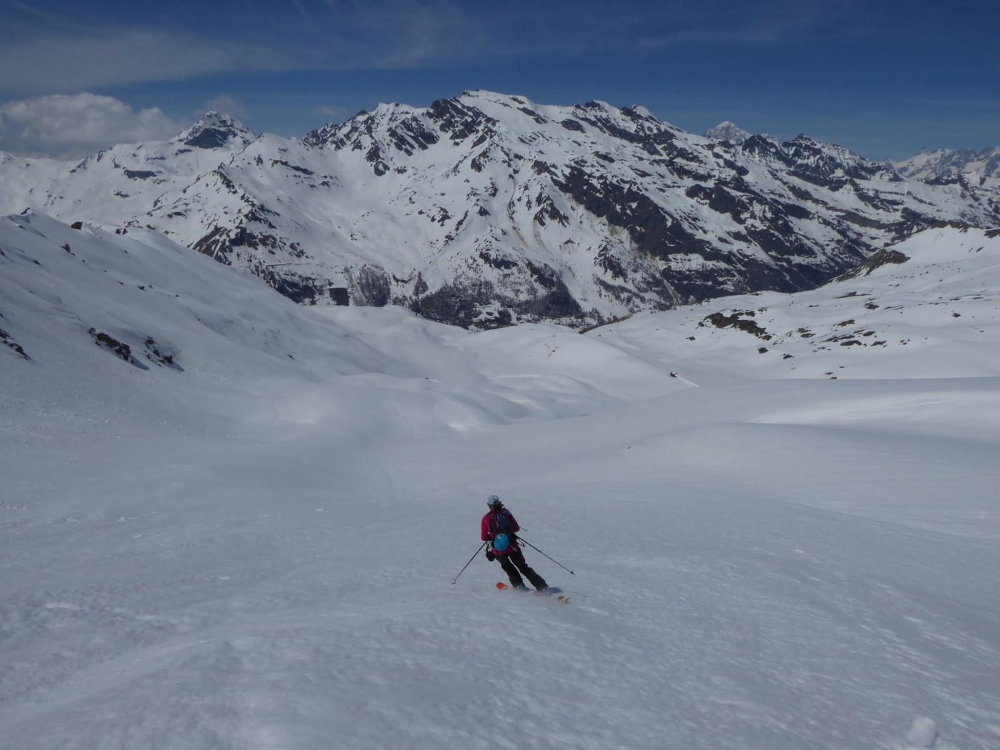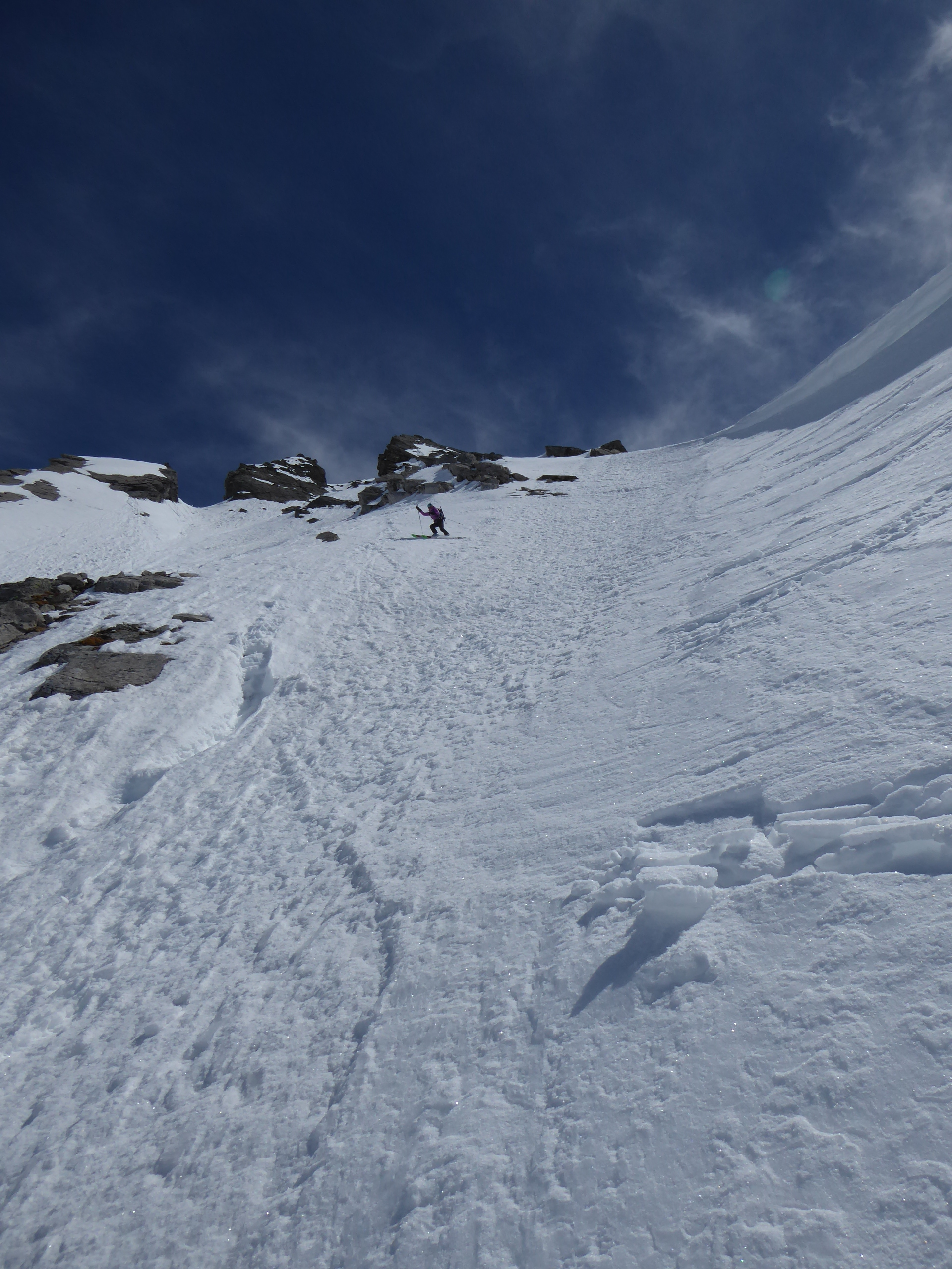 Regel encore moins bon qu'il y a deux jours. La neige était vraiment ferme au-dessus de 2400m à la montée. L'arête ouest de la becca di Tei était en neige transfo dure. Dans le couloir NO, un peu de poudre, de la croute assez bonne à skier, de la neige dure. Peu d'évolution de la neige au-dessus de 3000 m en raison du vent d'ouest.