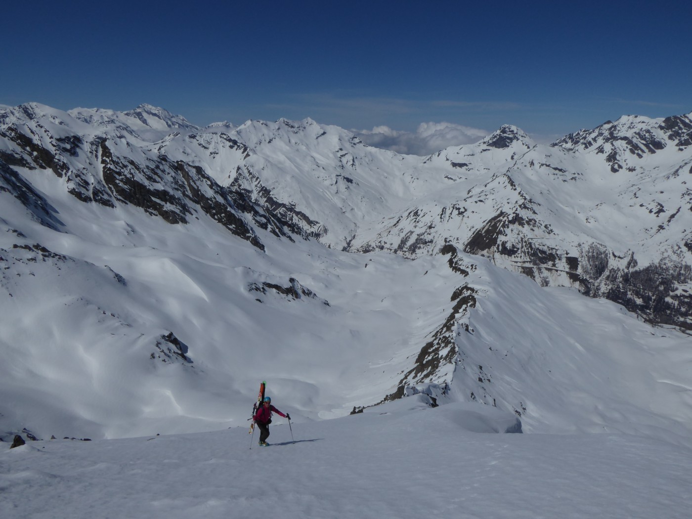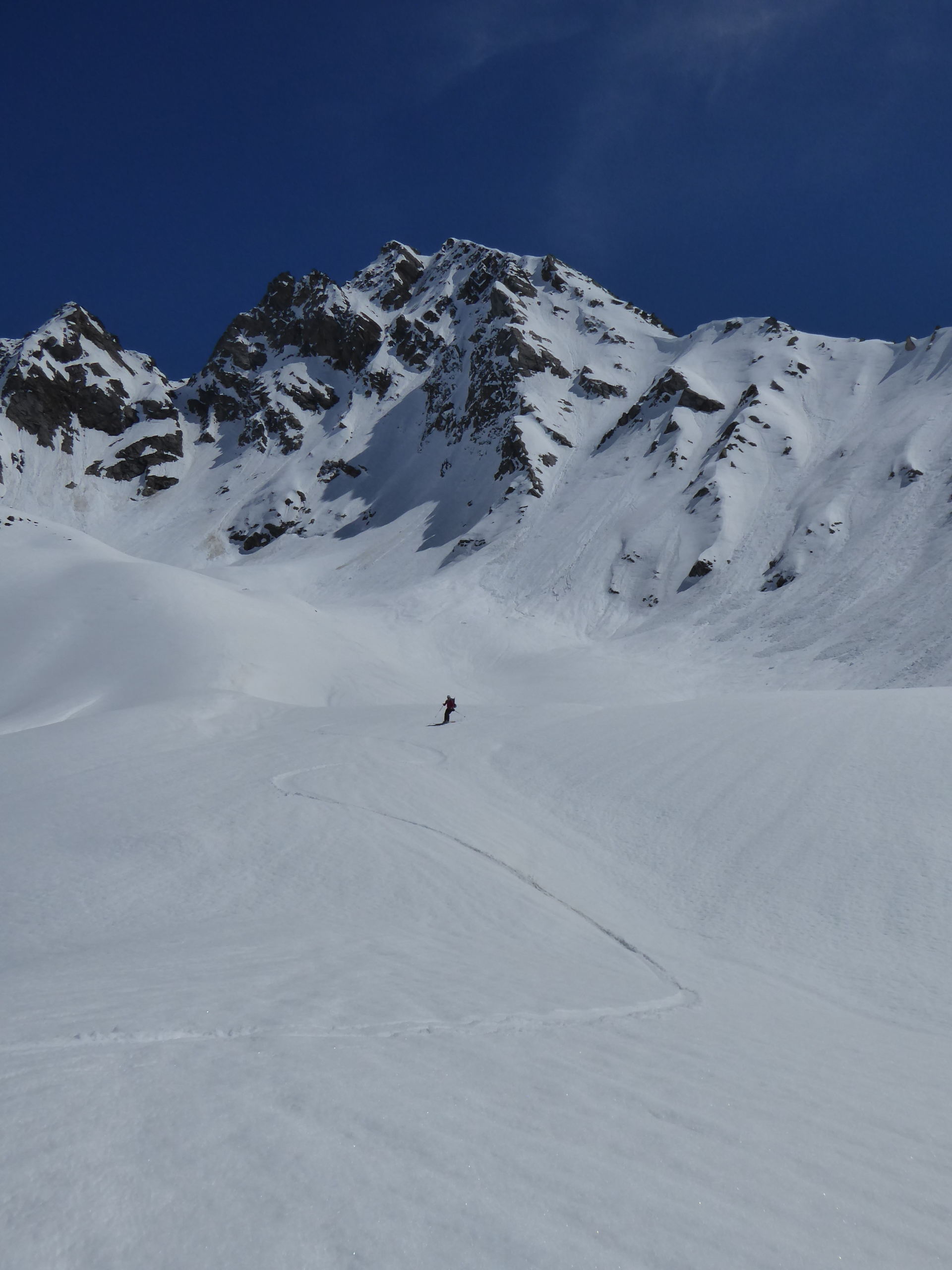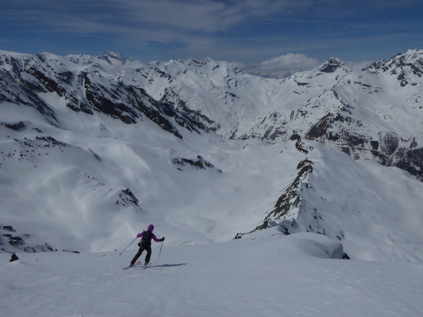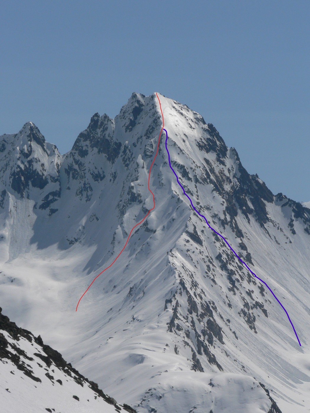Regel encore moins bon qu'il y a deux jours. La neige était vraiment ferme au-dessus de 2400m à la montée. L'arête ouest de la becca di Tei était en neige transfo dure. Dans le couloir NO, un peu de poudre, de la croute assez bonne à skier, de la neige dure. Peu d'évolution de la neige au-dessus de 3000 m en raison du vent d'ouest.