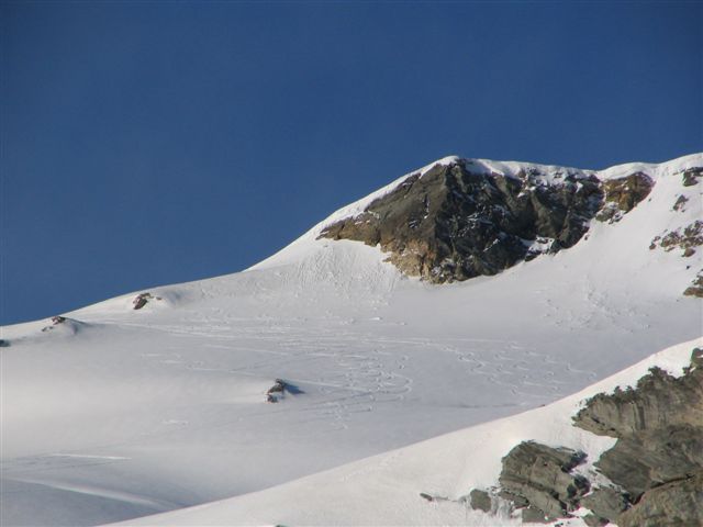 Parti pour la Grande Rousse, l'oubli de l'eau dans la voiture (+ fatigue) m'a fait traverser vers ce sommet facile vers 2900. Bonne descente sur un terrain bien skiant après un repérage depuis le sommet de l'ensemble des possibilités du coin.