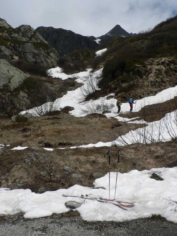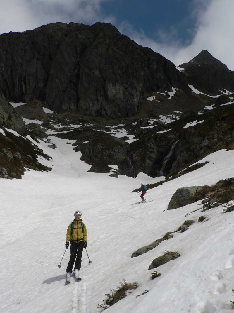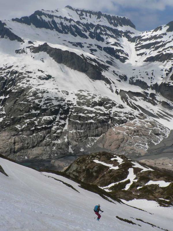 ça skie encore du sommet jusqu'à la route rive gauche du lac (qui est à sec) moyennant quelques passages sur herbe...