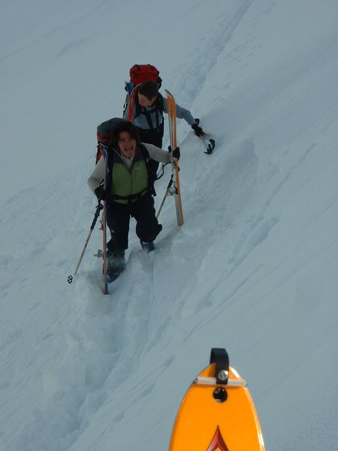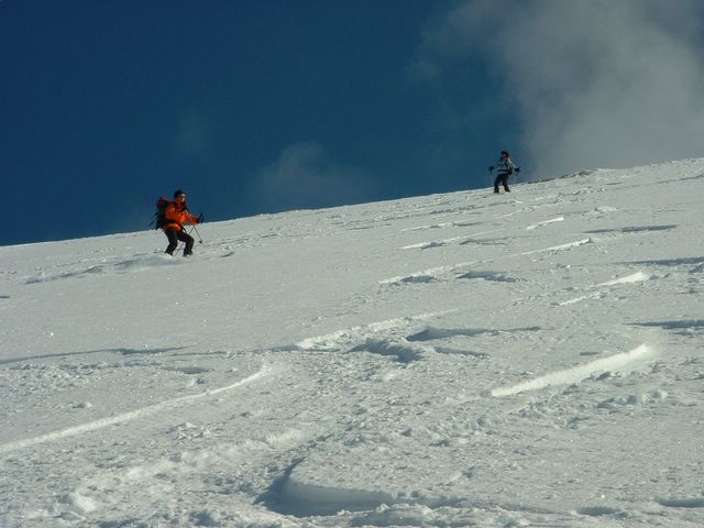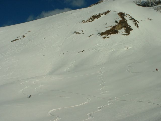Sortie organisée et vehiculée par nos 2 filles du jour. Superbe descente sur cette face pentue sans etre raide , le tout dans une poudre immaculée ... Commentaires de CHM sur cette couse tout à fait appropriés : avant notre passage 3 traces en haut pour 1 sur le bas ... Royale.