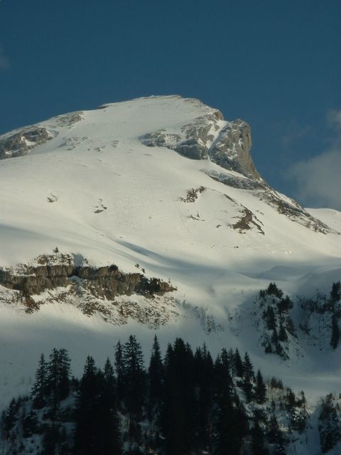 Superbement enneigée meme en partie basse. Manteau sans soucis , quoique posé sur un fond dur. En face , reptations en cours sous la Pointe d'Almet.