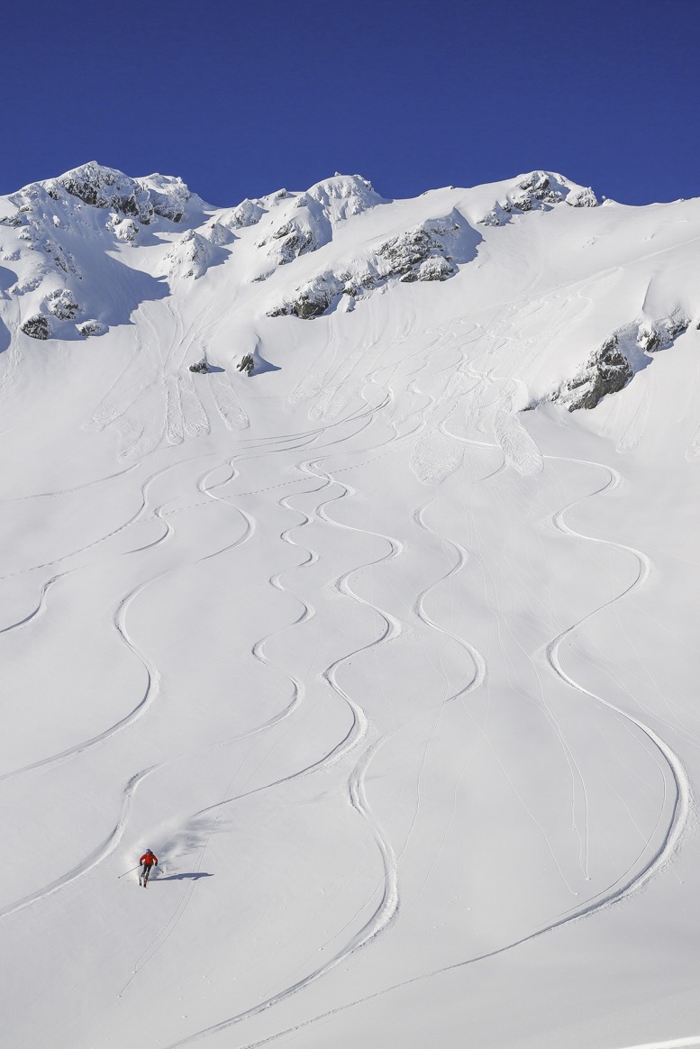 Pentes garnies d'une grosse épaisseur de fraîche => impossible d'affirmer quoi que ce soit. Mais le manteau paraît homogène. Test du bâton ok. Quelques rares coulées déjà parties. Peu de monde sauf sur D5 (autoroute).