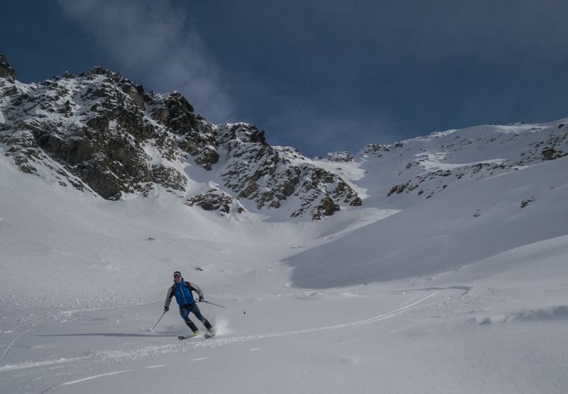 Pipay=>Oursière=>combe du Pra=> Evêque=> Belle Etoile=>couloir sud=>Ilettes en AR=> Dent du Pra=>SW sur Vénétier=>cime de la Jasse=>"grand" couloir nord-est=>col du Pouta=>bas TS Eterlou=>dôme des Oudis=>Pipay. D+/D- = 2950