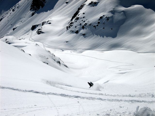 Beaucoup de neige sur ce versant, bien plus qu'annoncé par MF. L'ensemble paraît stable, la couche de fraiche semble bien adhérer à la vieille couche.