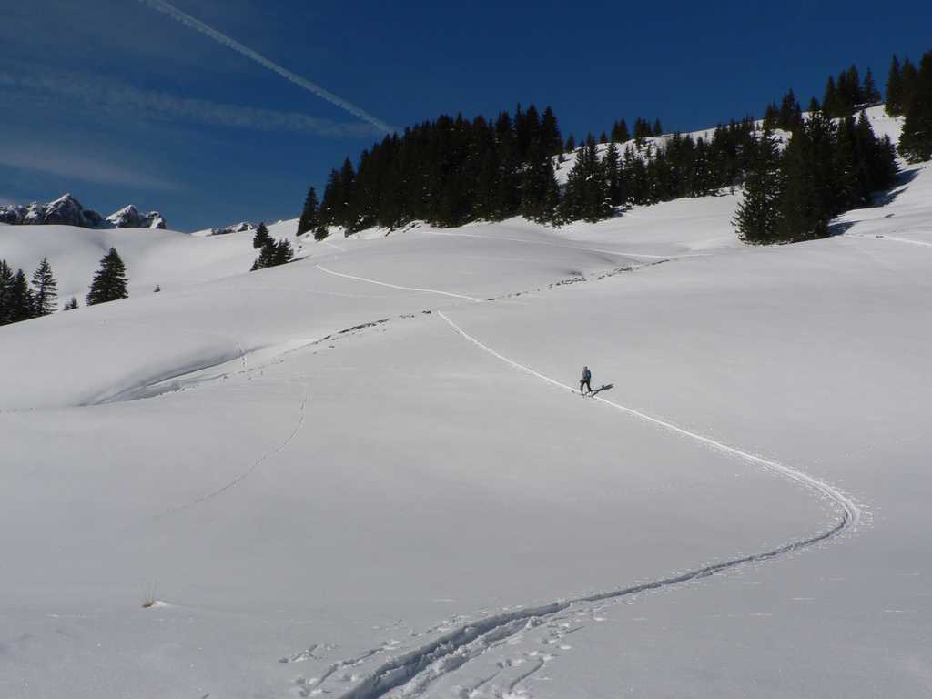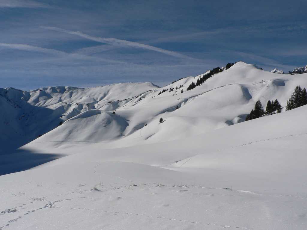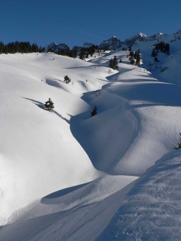 Le vent de NE a bien abîmé la neige entre 1500 et 2000. On trouve quand même de la poudre dans les pentes N un peu abritées. Au sud, ça commence à transformer.