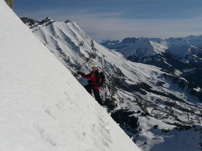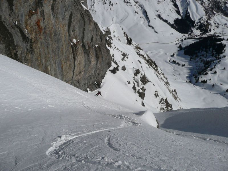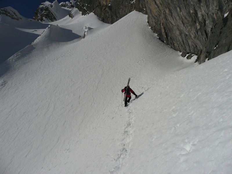 C' est déjà tard pour ce couloir: il doit être plus judicieux de choisir une journée froide de janvier ou début février pour avoir de la poudre de haut en bas.