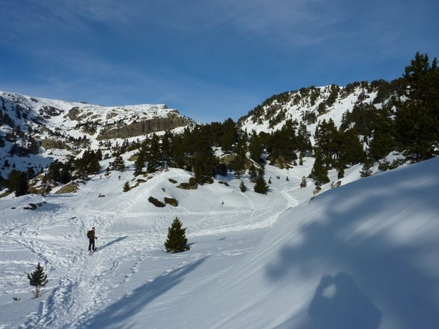 Quelques centimètres de neige sont venus améliorer la glisse dans la descente sur le petit lac des Escombailles. La descente n'était pas mauvaise côté sud de la Botte non plus même en allumettes (et en choisissant bien sa "ligne" come disent les friraïders).
