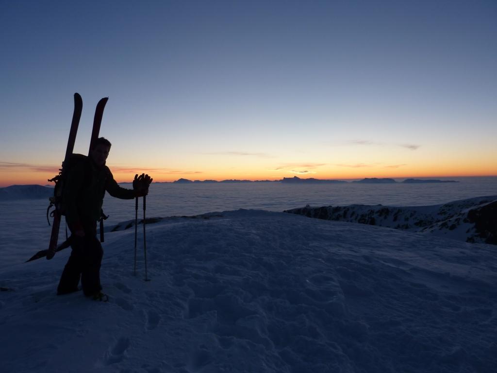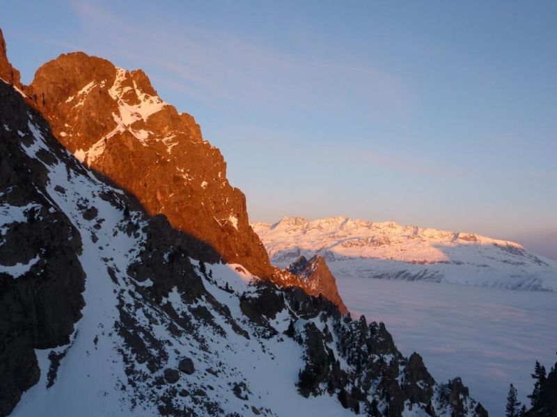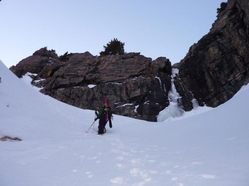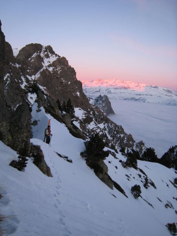 Remontée du petit couloir est de la Botte après le lac des Escombailles (2 à 3 traces à pied devant), descente en sud. Descente dans la pénombre sur les pistes dures de bonne qualité.