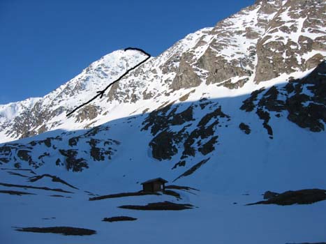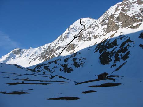 ascension vers col 3059 passer le col, remonter en sud_ouest (par derriere donc) jusqu'au sommet 3214->descente (par contre) en nord_est, directe dans la face