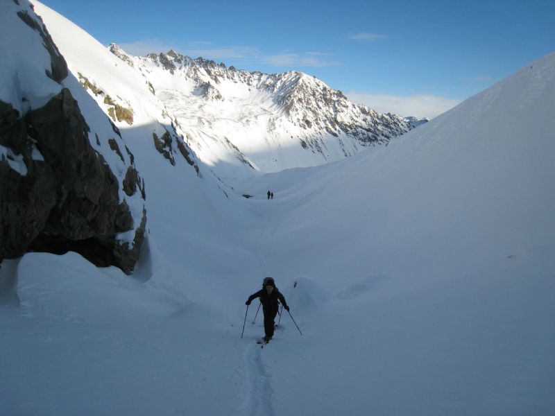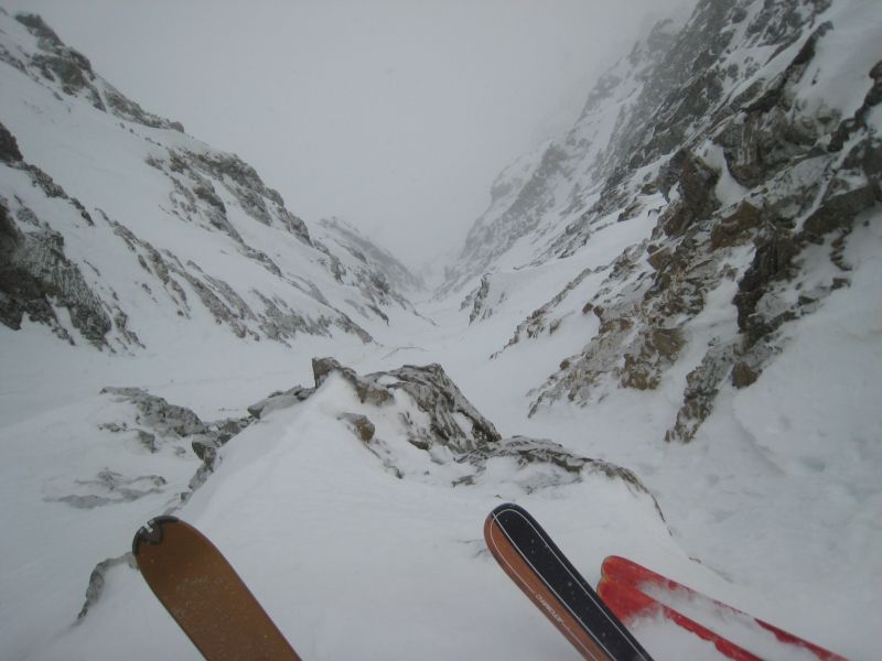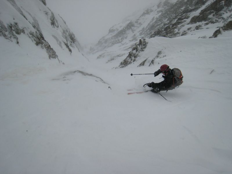 Le couloir est moyennement remplie , mais aucun bricolage. Ça skie à la brèche avec une traversé rapide au dessus de cailloux.