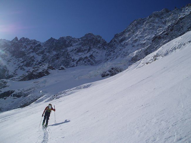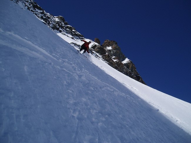 Pas de trace, un glacier de Tombe Murée magnifique, un couloir court mais raide et non moins magnifique sur lequel on n'avait peu d'infos récentes, vraiment de l'Oisans comme on l'aime.