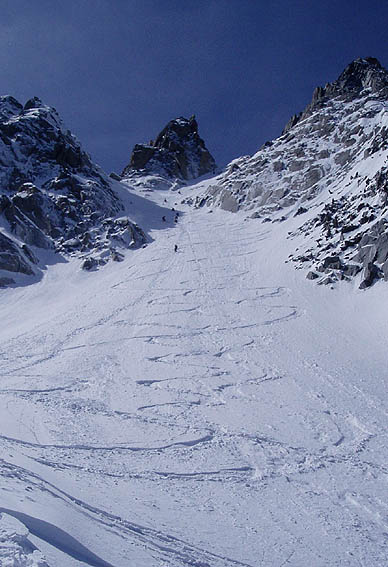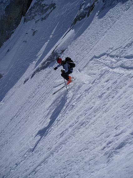 Une "classique" qu'il fallait bien faire mais qui ne restera pas dans les courses majeures. Certes le cadre est très beau mais la foule ce jour-là (11 personnes derrière nous !!!, 2 devant - merci à eux pour la trace) enlevait une partie du mythe et, personnellement, ajoutait une touche de stress. Dans une telle pente, il y a alors un risque de jeu de quille, un risque de recevoir des purges déclenchées par les autres... Ce fut donc bien vite torché sans vraiment avoir eu le temps de se poser. Et pour les prochains prétendants, il va vraiment falloir attendre une nouvelle chute importante.