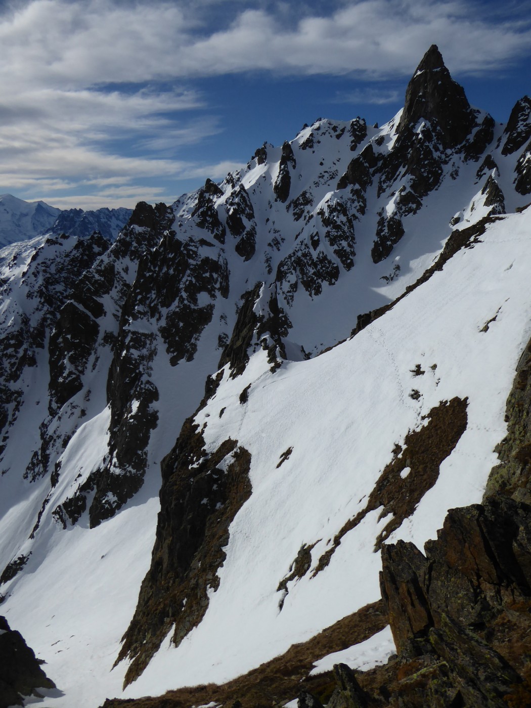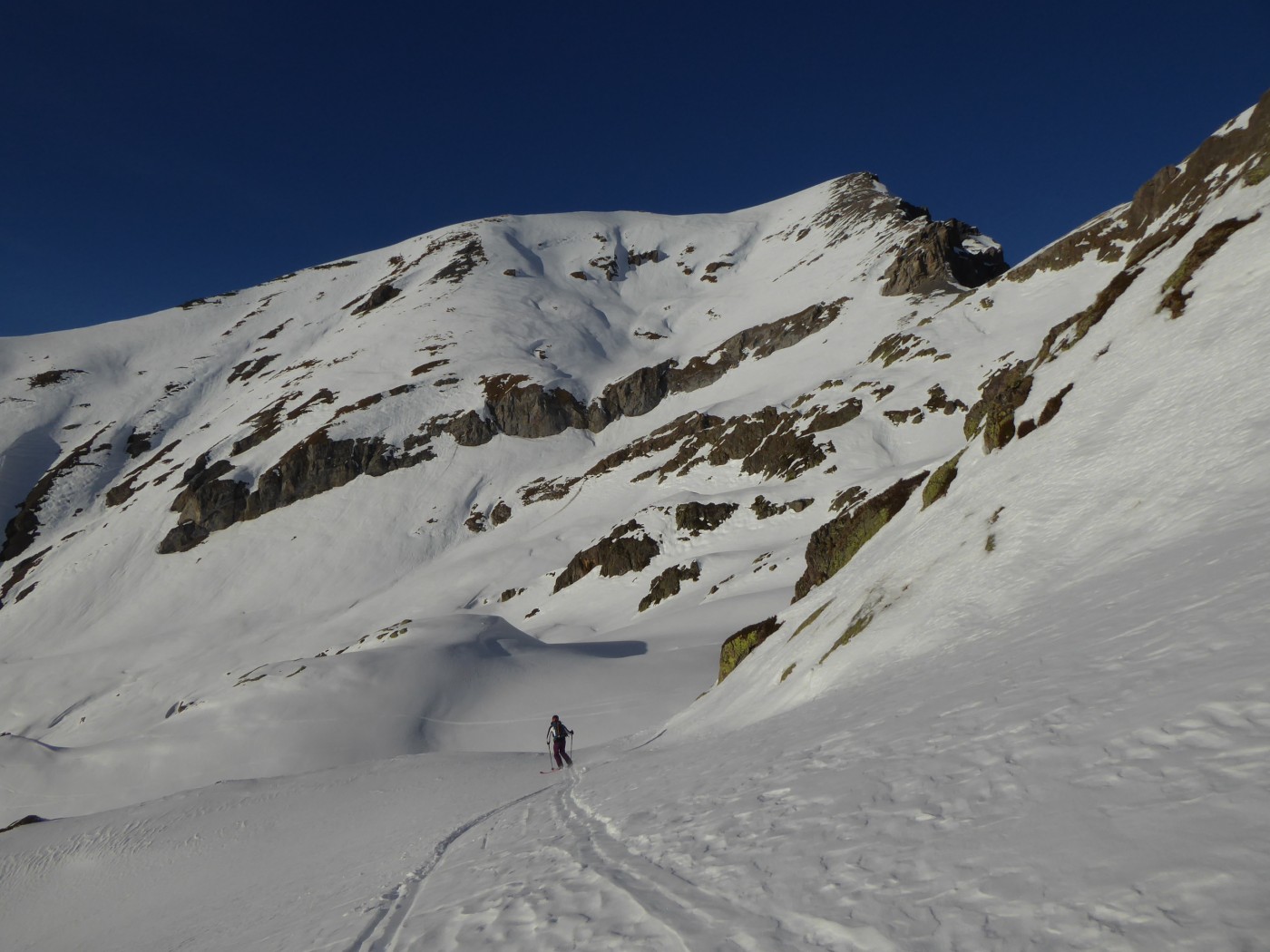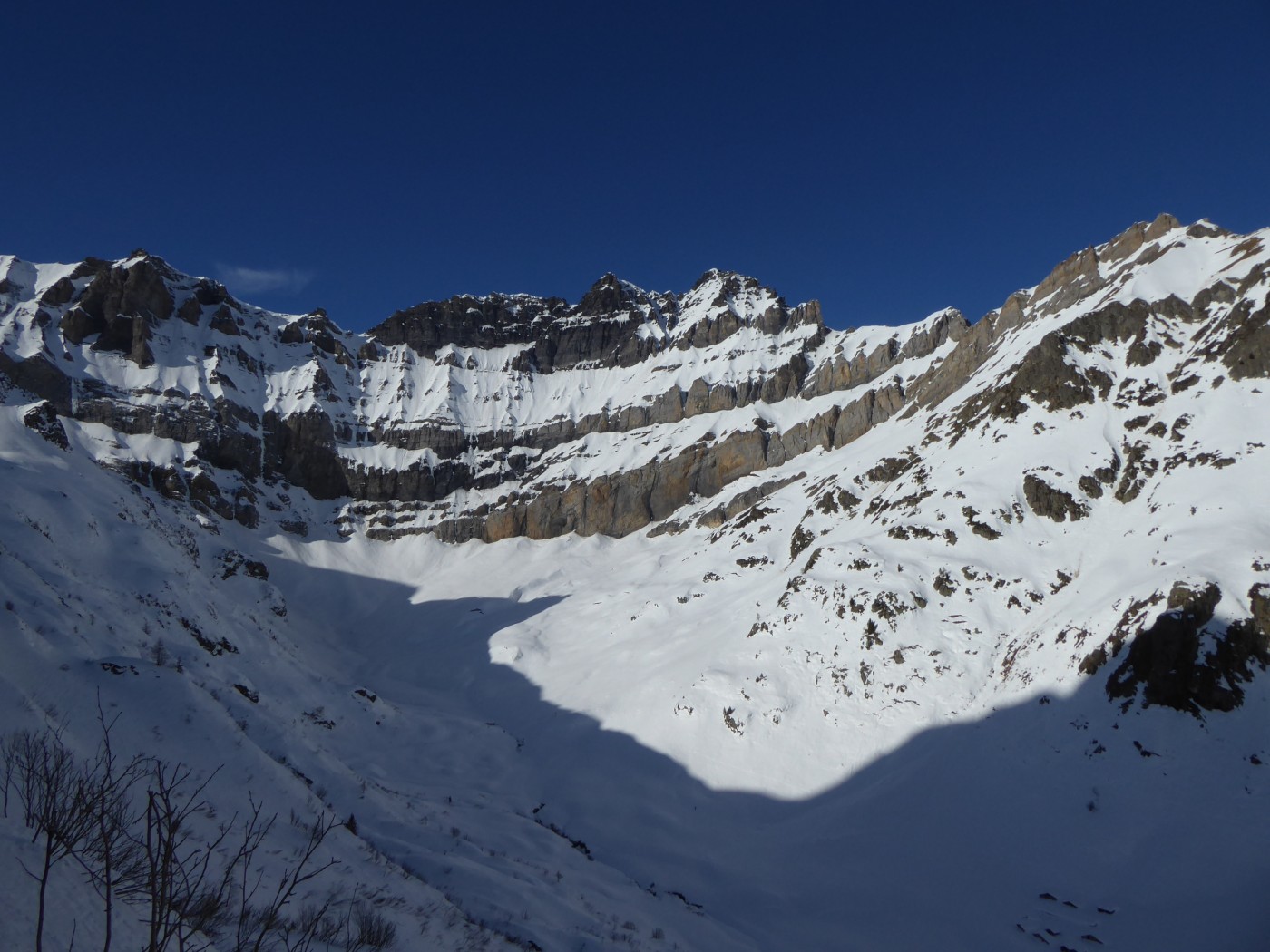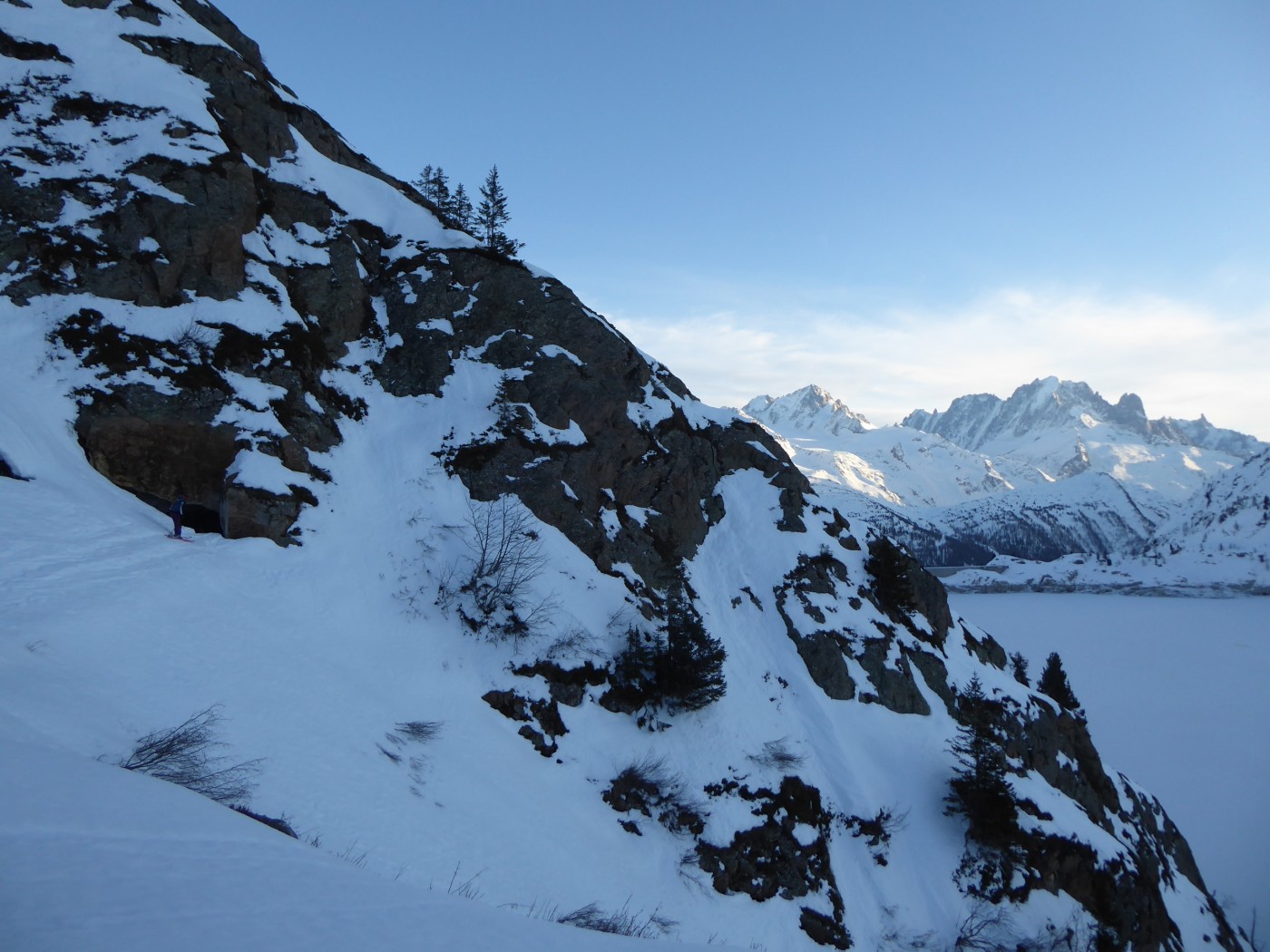 Beau tour et grande tranquilité. Juste aperçu au loin une personne dans le fond du vallon d'Emaney et deux dans la face sud directe du Luisin. Sinon des chamois, bouquetins, un rapace au-dessus de la comba Rossa et des choucas… Le chemin au-dessus de la Léchère pour monter à l'alpage de Fenestral est en partie déneigé dans la forêt. La sortie du tunnel côté Gueulaz se fait par le conduit vertical (échelle) comme d'habitude en hiver.