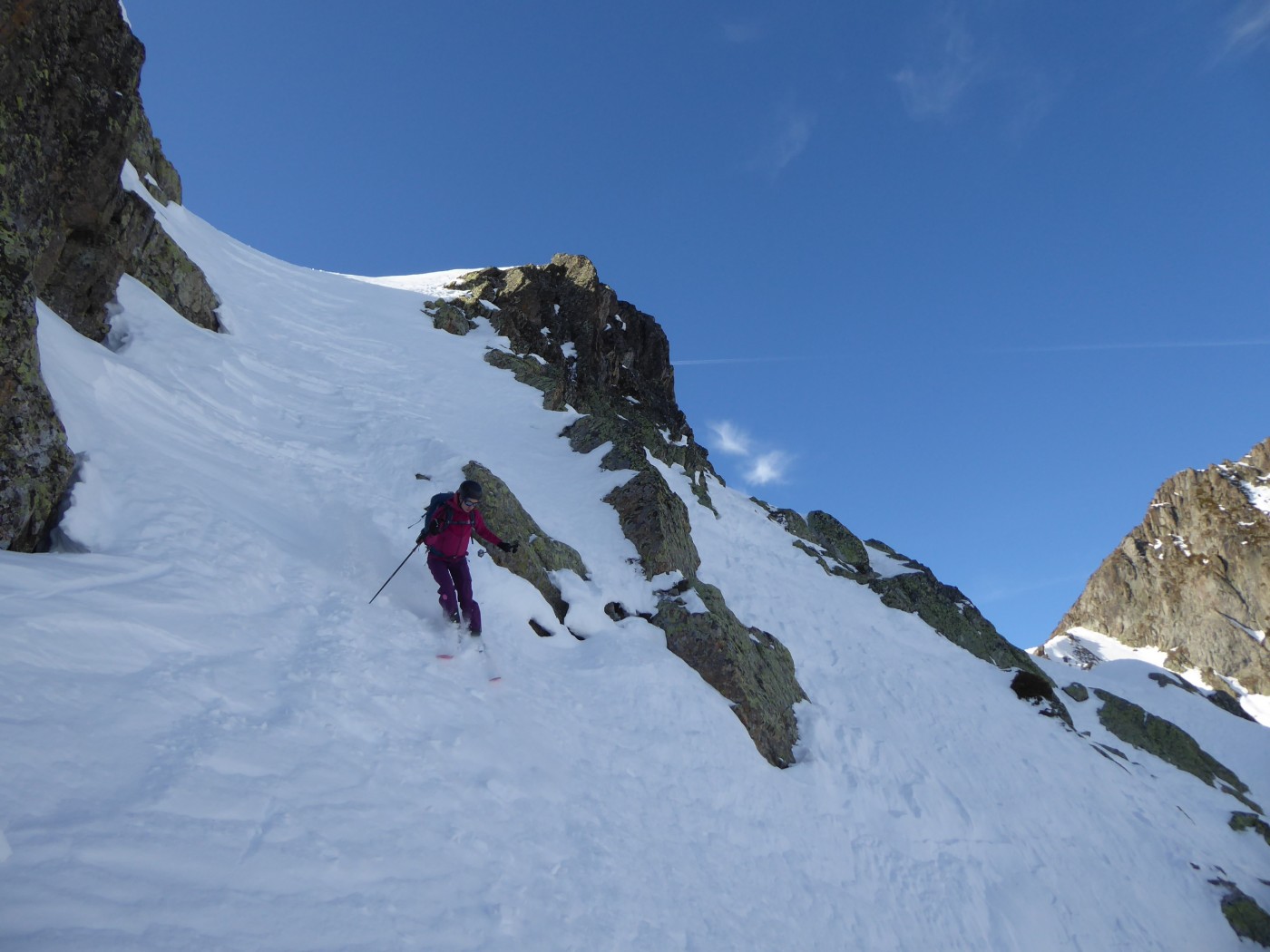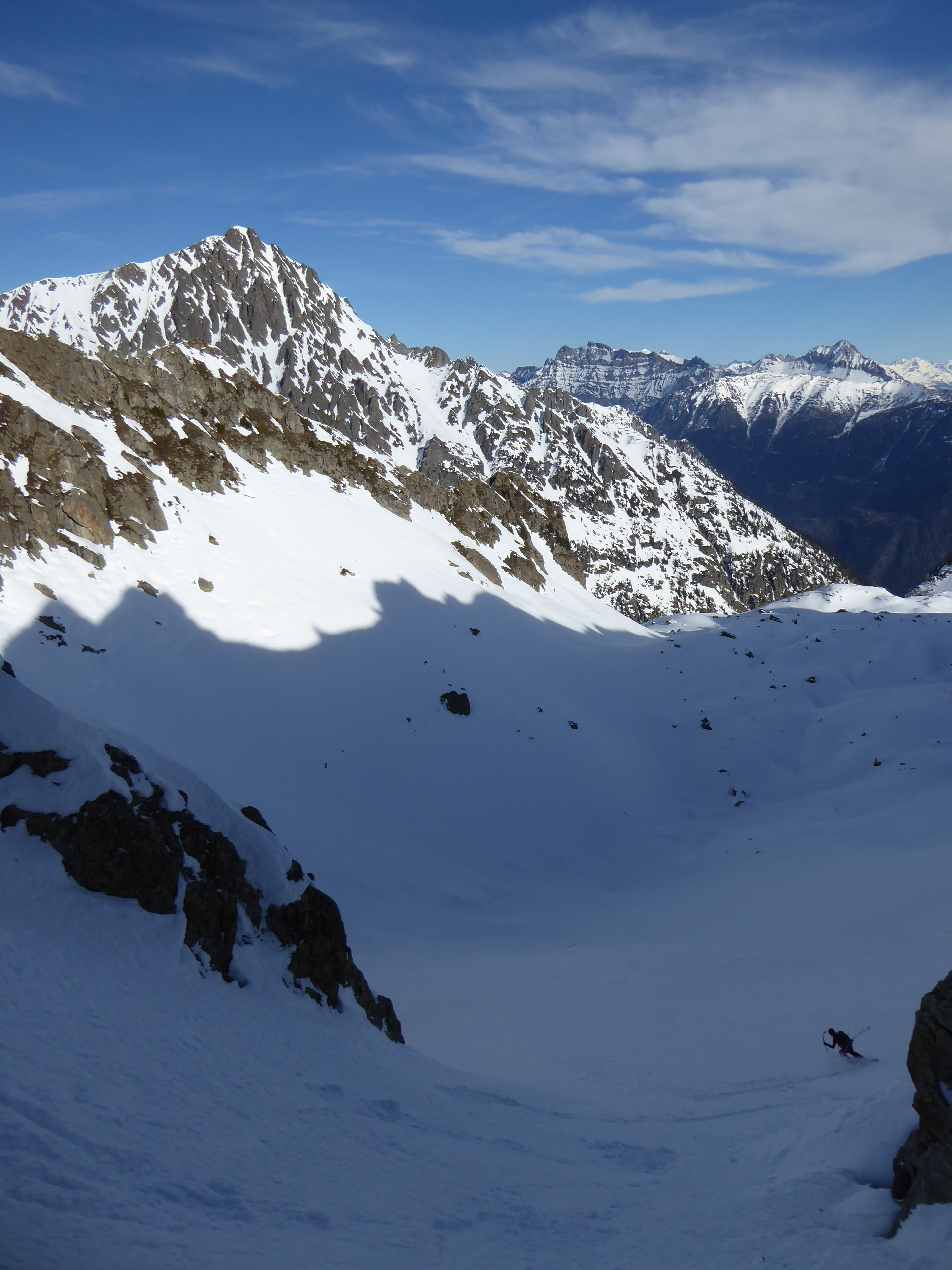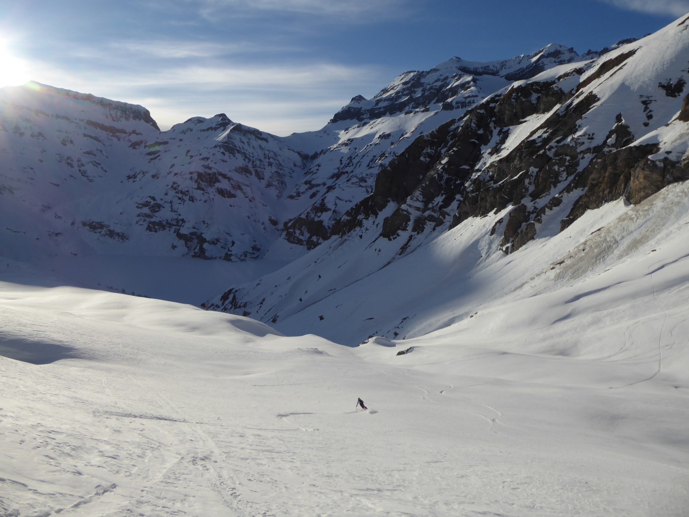 Neige transfo dans la comba Rossa et le couloir SO de la Renarme. Poudre plus ou moins ventée côté Emaney et dans les pentes NO qui descendent sur le lac d'Emosson.