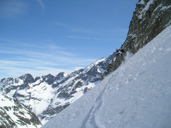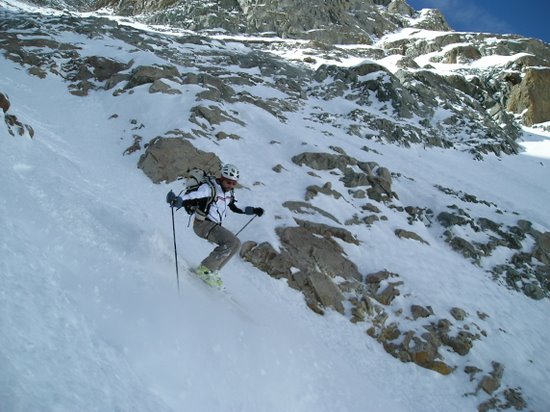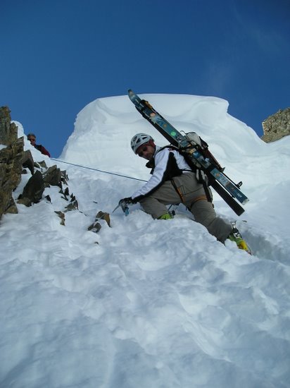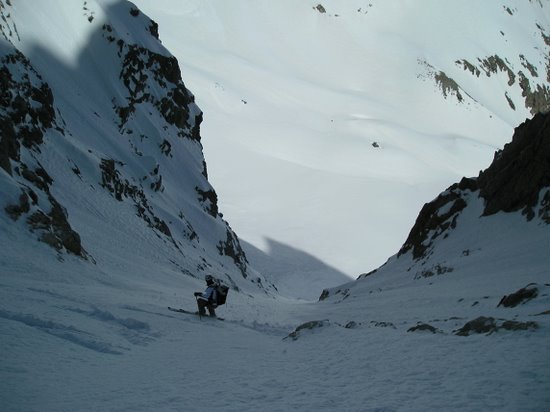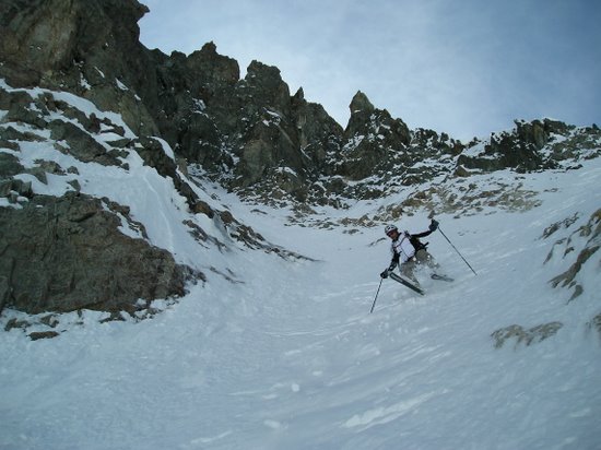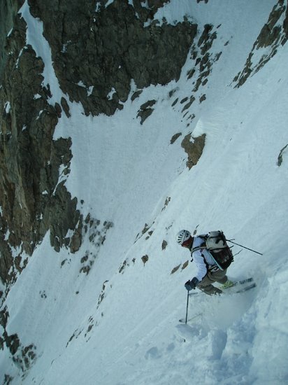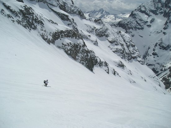 Regel moins prononcé que la veille. Bonne neige tassée dans le couloir. vers le milieu début de "goulettage". Dans l'ensemble très bon à skier. Remontée au col de la Casse Déserte en plein cagnard mais en fait pas si chaud, neige correcte. De l'autre côté dans le bas vu notre heure tardive, grosse soupe sinon transfo un peu lourde mais acceptable.