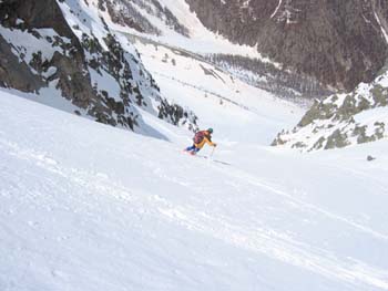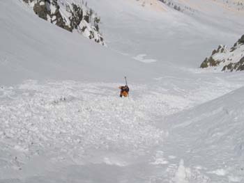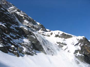 Bon regel nocturne, le soleil nous transforme à point la neige pour une descente vers 13 heures. Le soleil toujours lui incite la neige à couler sur les pentes plus raides avec quelques aérosols.