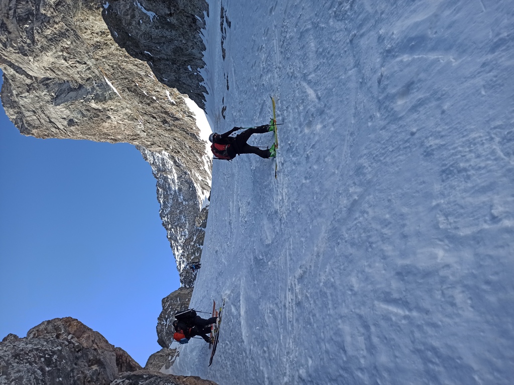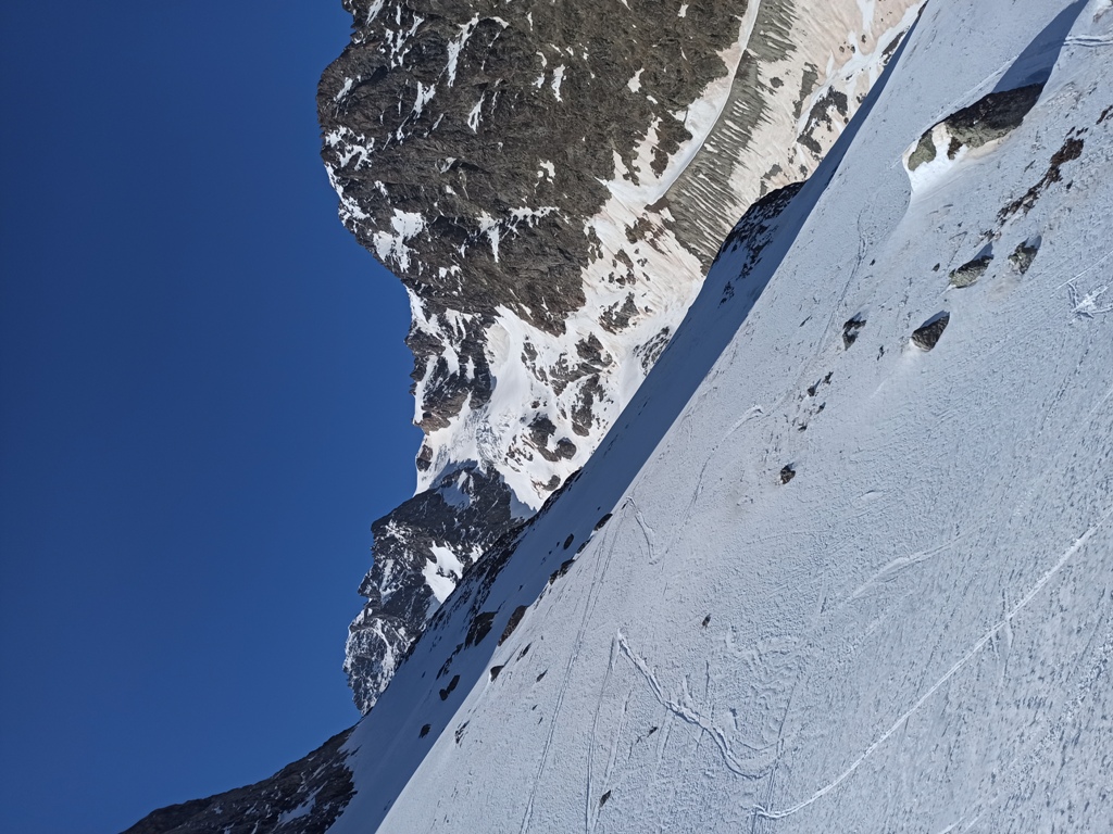 Risque2.Très peu de neige de ce côté des Ecrins. le bas du vallon de l'homme a très peu de neige, ça touche beaucoup, la neige n'est pas transformé on ski dans du gros sel. Au dessus il faut se méfier des requins. De loin la descente de l'aigle a l'aire assez compliqué.