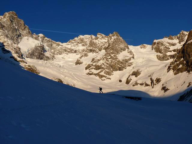 C'était la course la plus facile décrite par M. Armand, ce n'est certainement pas la moins intéressante : une approche ridicule, pente toujours soutenue sitôt la Romanche franchie, et un panarama qui n'à rien à envier à toutes les courses plus prestigieuses du coin. En plus on a toutes les chances d'y trouver de la neige froide. Autres images et impressions [ici->http://lesbertonches.over-blog.com/article-encore-une-journee-decouverte-en-oisans-49085314.html]