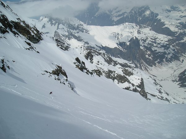 Cela faisait bien longtemps que je voulais faire cette brèche en V très esthétique de loin avec ce formidable Sirac comme grand frère. Cadre tip-top, séracs bleutés et tarabiscotés.