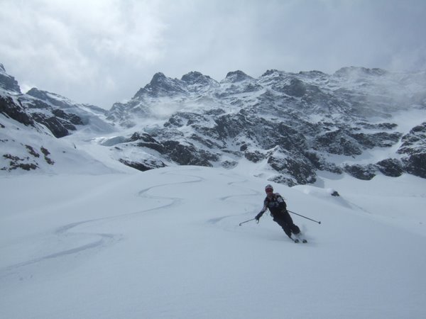 Classique à la montée mais à la descente on a tiré à gauche sur le glacier en passant près des séracs. Puis rattrapés notre trace de montée avant la traversée très chaude des boules.