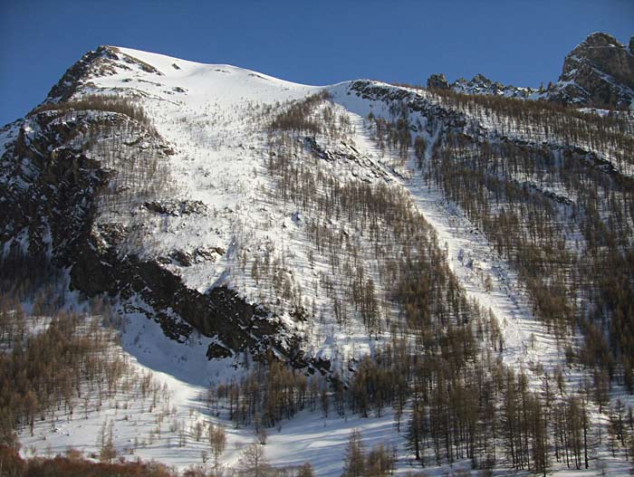 Neige un peu moins tassée sur les contre pentes.