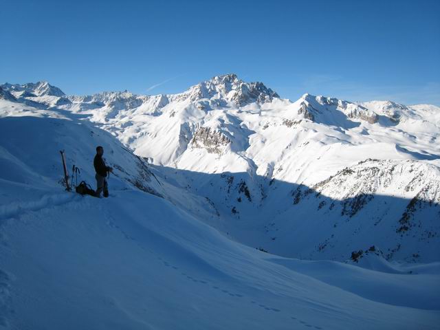 Voiles annoncés au sud, envie de ciel bleu, les plans initiaux sont abandonnés et on se décide au dernier moment pour un tour en Vanoise. On ne sera pss déçu, cette boucle est superbe. Dommage qu'à cette époque, on n'y voit quasiment pas le soleil, mais ça nous a aussi permis de bénéficier d'une poudre de rêve sur toute la descente