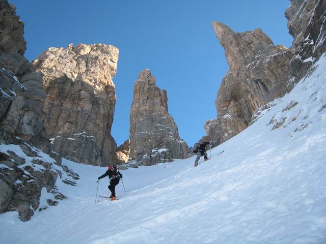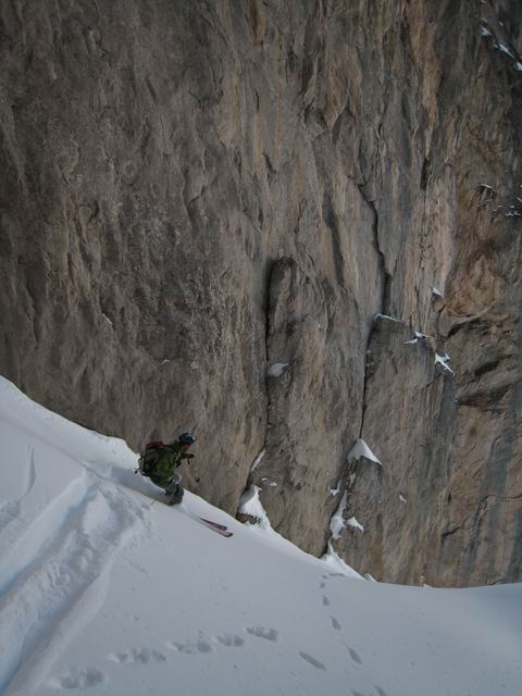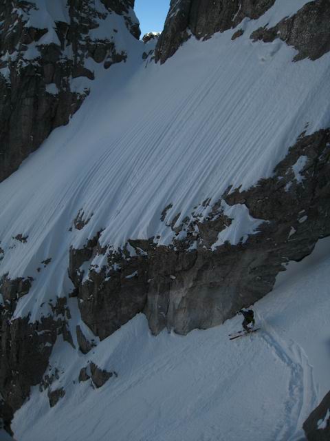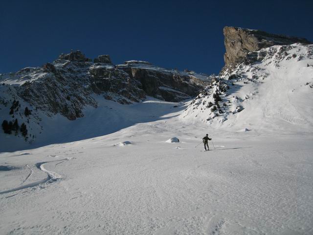 Globalement le fond est ferme, hormis sous le col de la Pierre, et surtout sous la Brêche Portetta versant Ouest, ou le bâton s'enfoncait quelquefois un peu trop. Heureusement, la poudre de surface n'avait aucune cohésion, mais nous avons pris soin d'éviter ces zones, et n'étions pas mécontants de ne pas redescendre par ces grandes pentes.