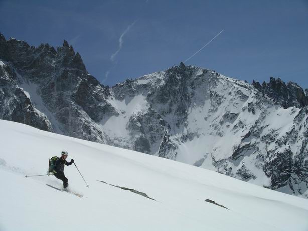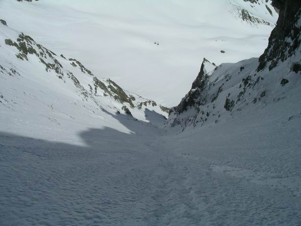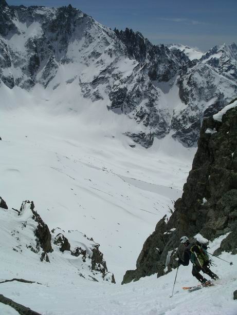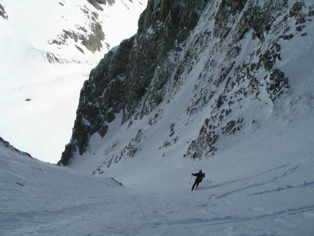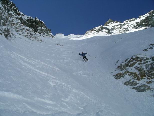 Deux beaux couloirs que l'on va chercher depuis la Bérarde, pour s'éviter le long plat depuis le Villard d'Arène (Merci à LTA pour les infos). Pose d'une main courante pour entrer ds l'Oriental pour pas perdre de temps (corniche). Christophe remontera l'Oriental pendant que j'irais skier l'Occidental, en meilleures conditions car plus encaissé.